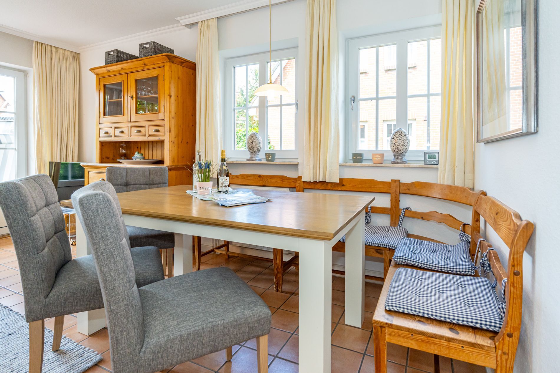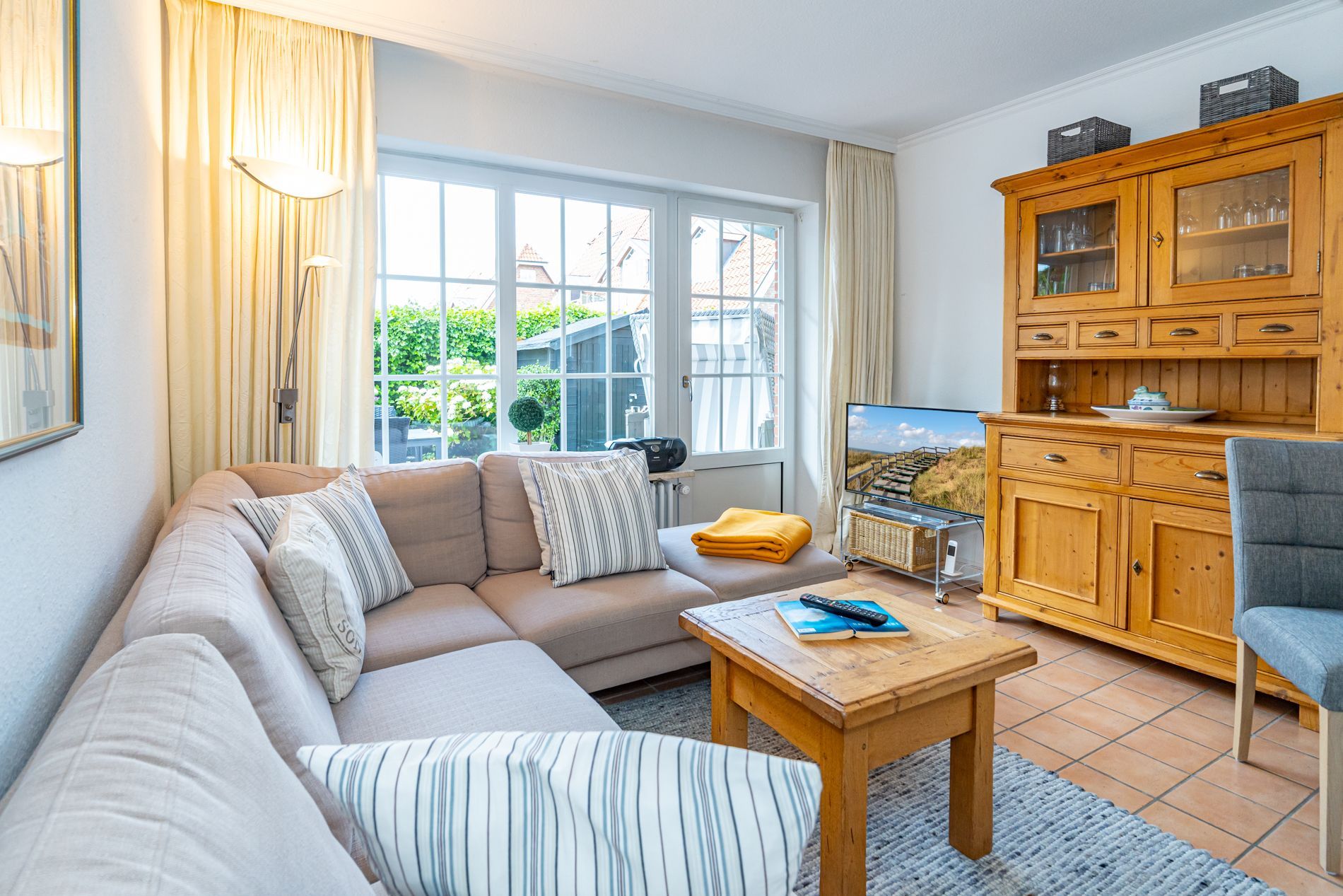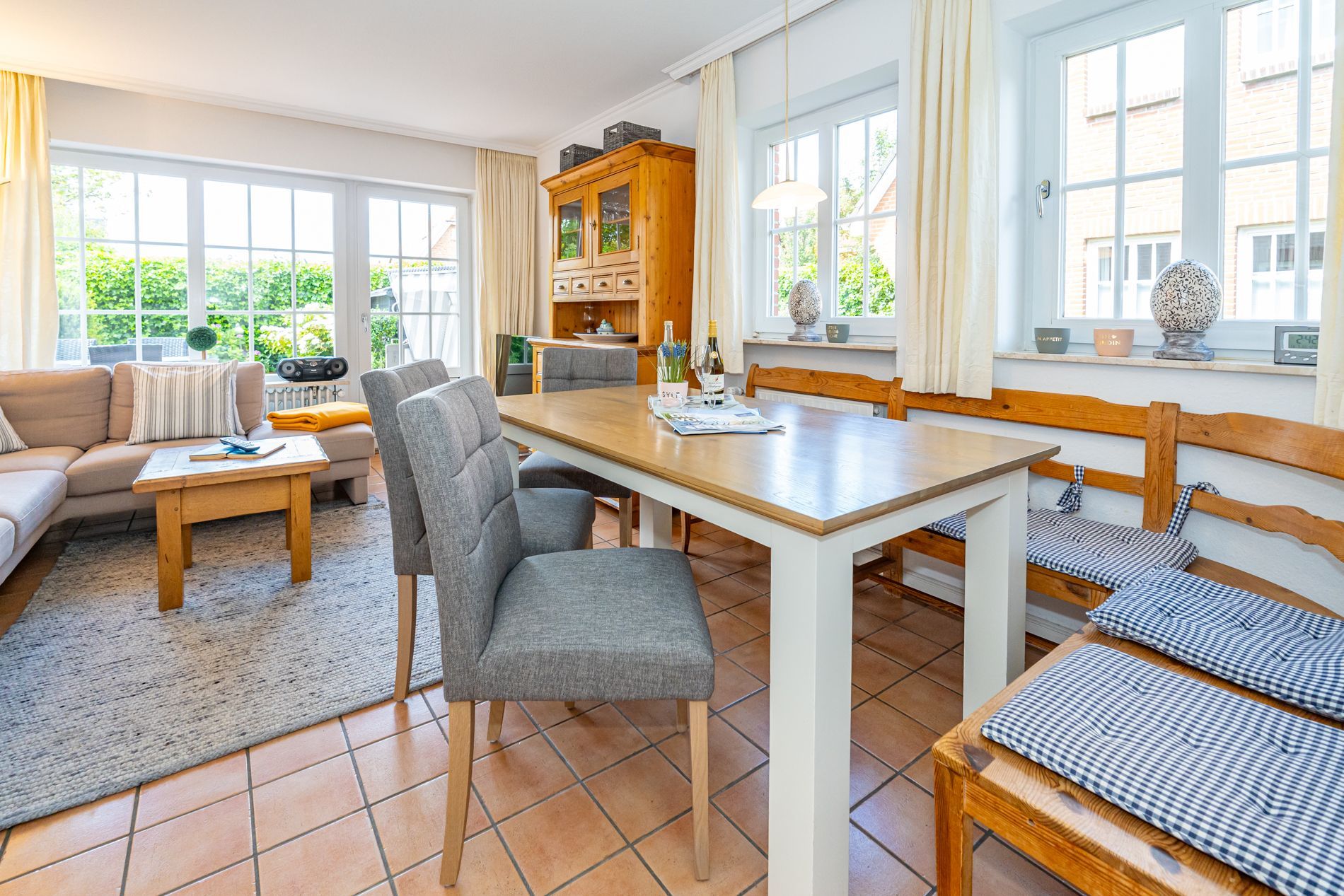 Diese großzügige Nichtraucher-Doppelhaushälfte bietet auf ca. 95?m² Wohnfläche ausreichend Platz für bis zu 6 Personen und liegt ruhig und familienfreundlich im Süden Westerlands nur etwa 10 Gehminuten vom Strand entfernt. Das Erdgeschoss überzeugt mit einem gemütlichen Wohnbereich inklusive bequemer Sitzecke, separatem Essplatz sowie moderner Unterhaltungstechnik (Flachbildfernseher, Radio/CD mit Stereo-Kassettendeck) und kostenfreiem WLAN-Zugang samt Telefonflatrate ins deutsche Festnetz. Die separate, voll ausgestattete Küche verfügt über einen Geschirrspüler, einen Backofen und einen großen Kühlschrank mit 3*-Gefrierfach perfekt für entspannte Urlaubstage mit der ganzen Familie.