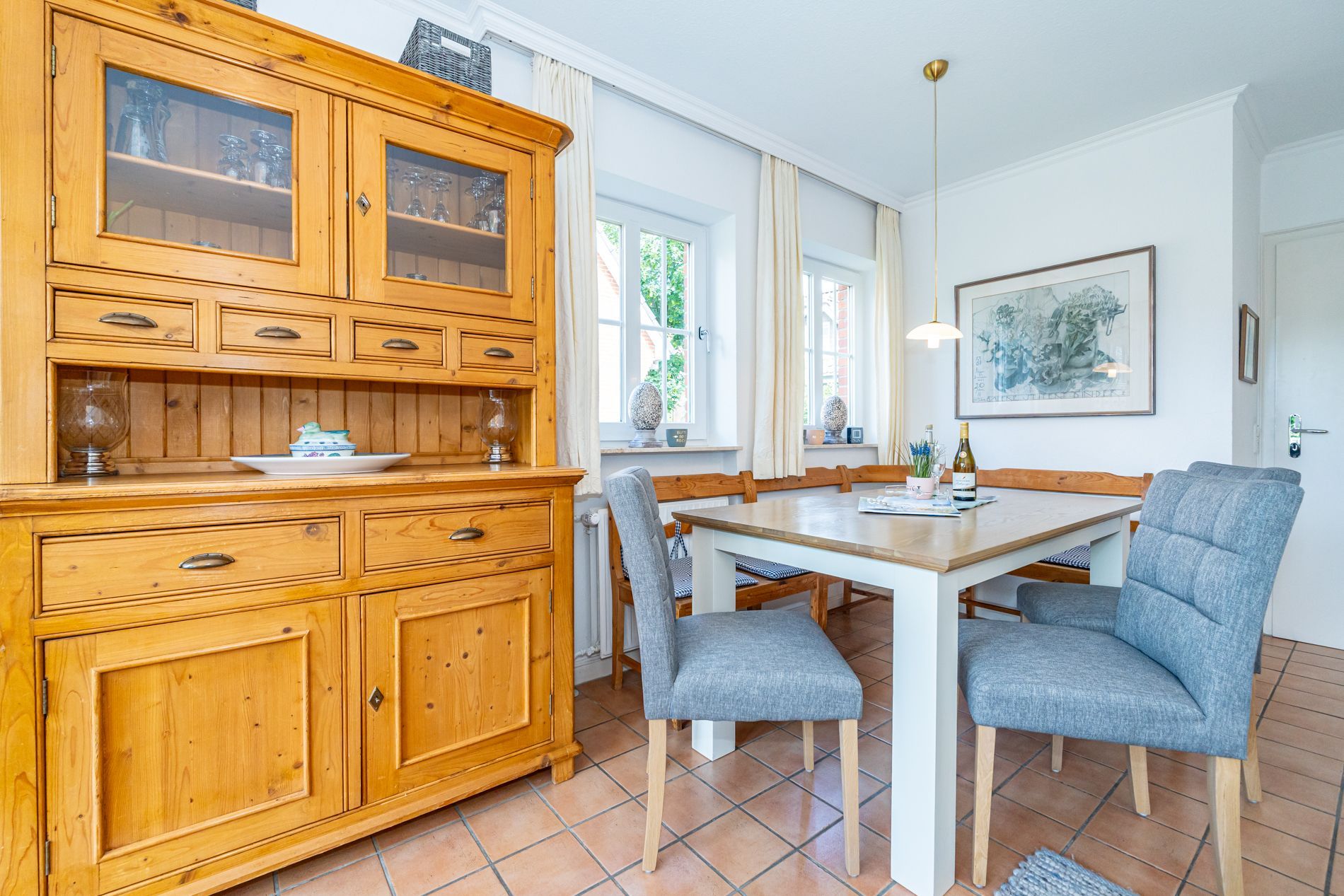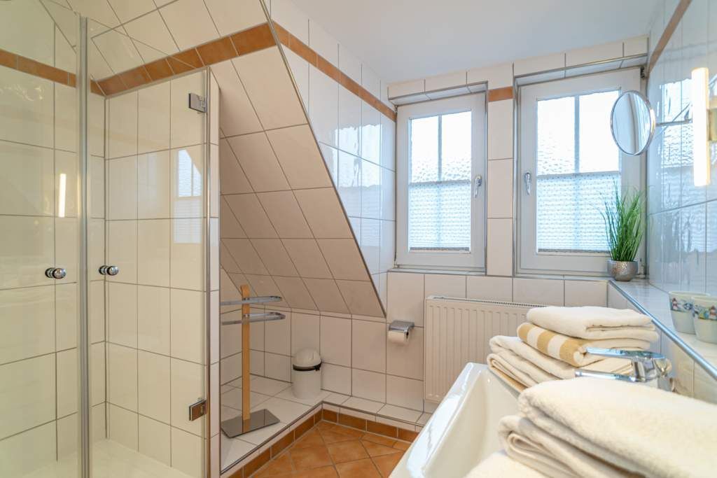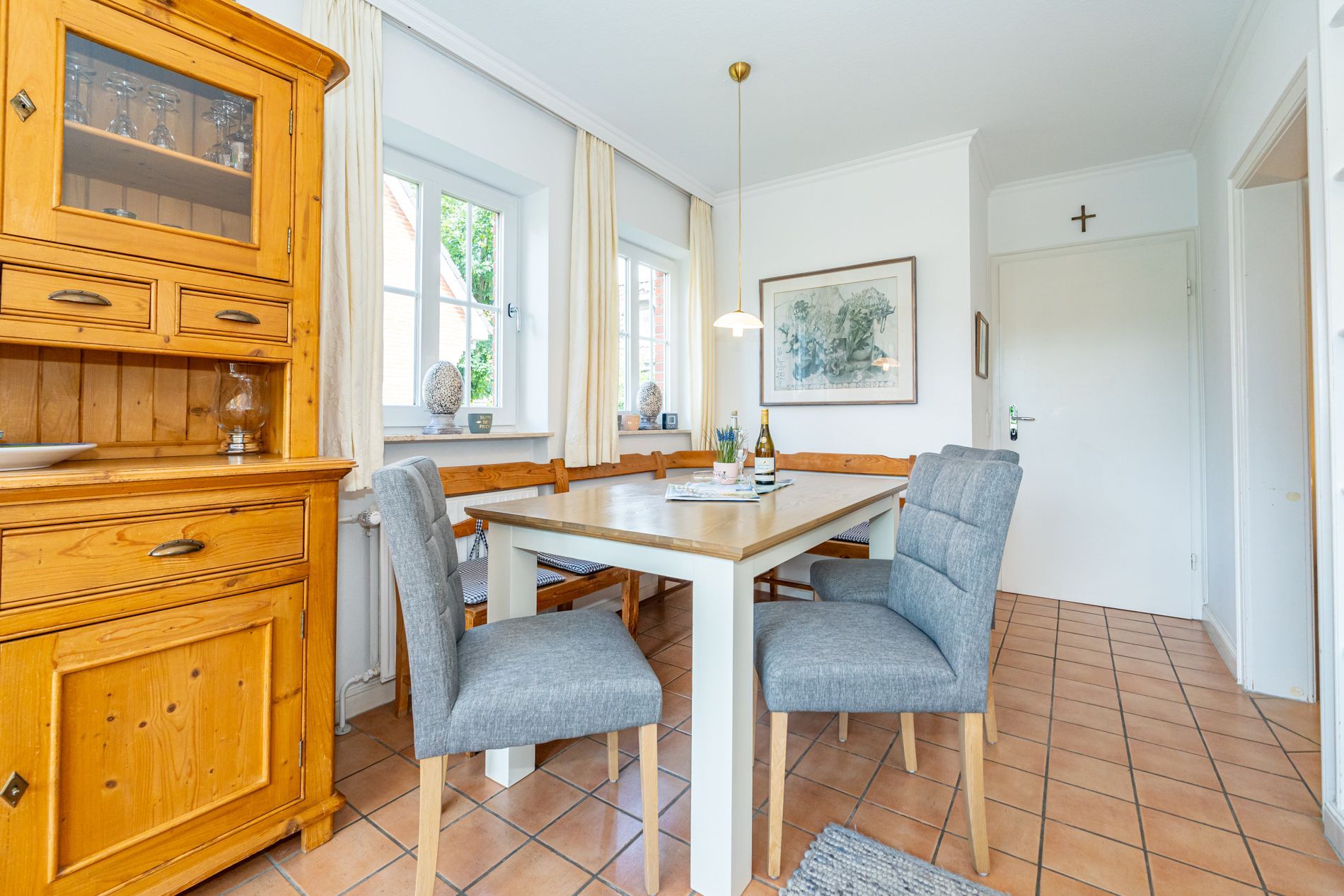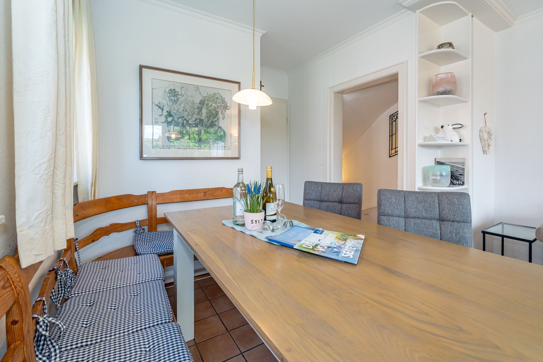Diese großzügige Nichtraucher-Doppelhaushälfte bietet auf ca. 95?m² Wohnfläche ausreichend Platz für bis zu 6 Personen und liegt ruhig und familienfreundlich im Süden Westerlands nur etwa 10 Gehminuten vom Strand entfernt. Das Erdgeschoss überzeugt mit einem gemütlichen Wohnbereich inklusive bequemer Sitzecke, separatem Essplatz sowie moderner Unterhaltungstechnik (Flachbildfernseher, Radio/CD mit Stereo-Kassettendeck) und kostenfreiem WLAN-Zugang samt Telefonflatrate ins deutsche Festnetz. Die separate, voll ausgestattete Küche verfügt über einen Geschirrspüler, einen Backofen und einen großen Kühlschrank mit 3*-Gefrierfach perfekt für entspannte Urlaubstage mit der ganzen Familie.
