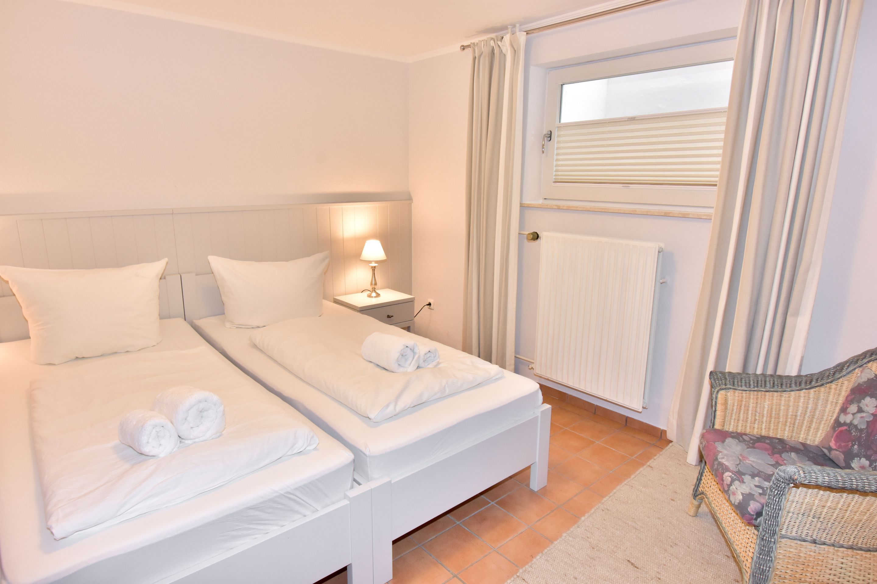 Im Objekt befinden sich zwei Schlafzimmer mit bequemen Doppelbetten, jeweils mit eigenem Duschbad/WC. Eines der Bäder ist zudem mit einer Waschmaschine ausgestattet. Ein weiteres Schlafzimmer mit zwei Einzelbetten und eigenem TV bietet zusätzlichen Rückzugsraum ideal auch für mitreisende Kinder oder Freunde.