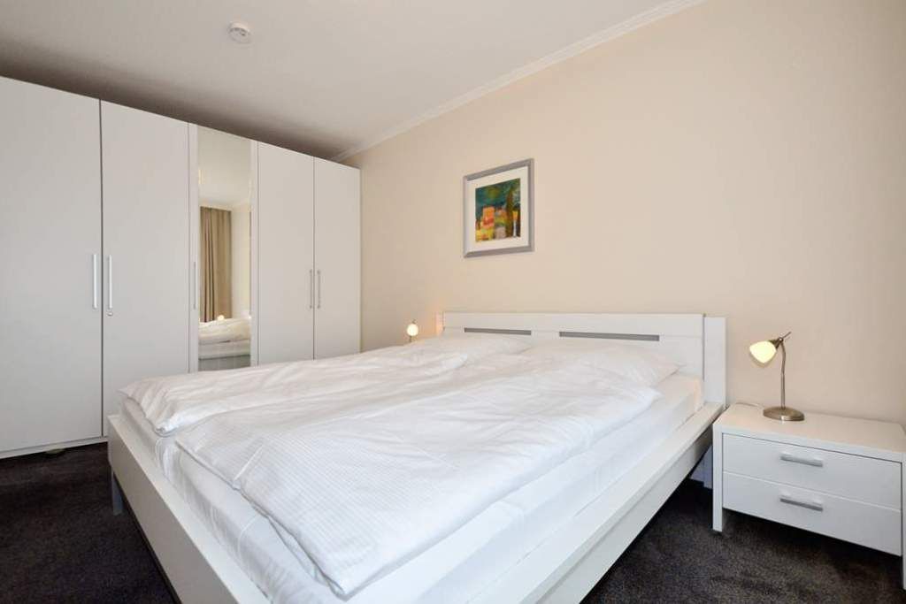 Modern eingerichtete 2-Zimmer-Nichtraucher-Ferienwohnung ca. 55 qm für bis zu 4 Personen in der 1. Etage in West-Lage mit West-Loggia. Wohnzimmer mit Doppelschlafcouch (0,90 x 1,85 m), Essplatz am Fenster, Kabel-TV. Separate Küche mit Mikrowelle und Geschirrspüler, Kaffeemaschine, Wasserkocher und Toaster gehören zur Grundausstattung, Duschbad/WC, Schlafzimmer mit Doppelbett (2 x 0,90 x 2,00 m). Tiefgaragenplatz inkl. Haustiere sind hier nicht erlaubt.