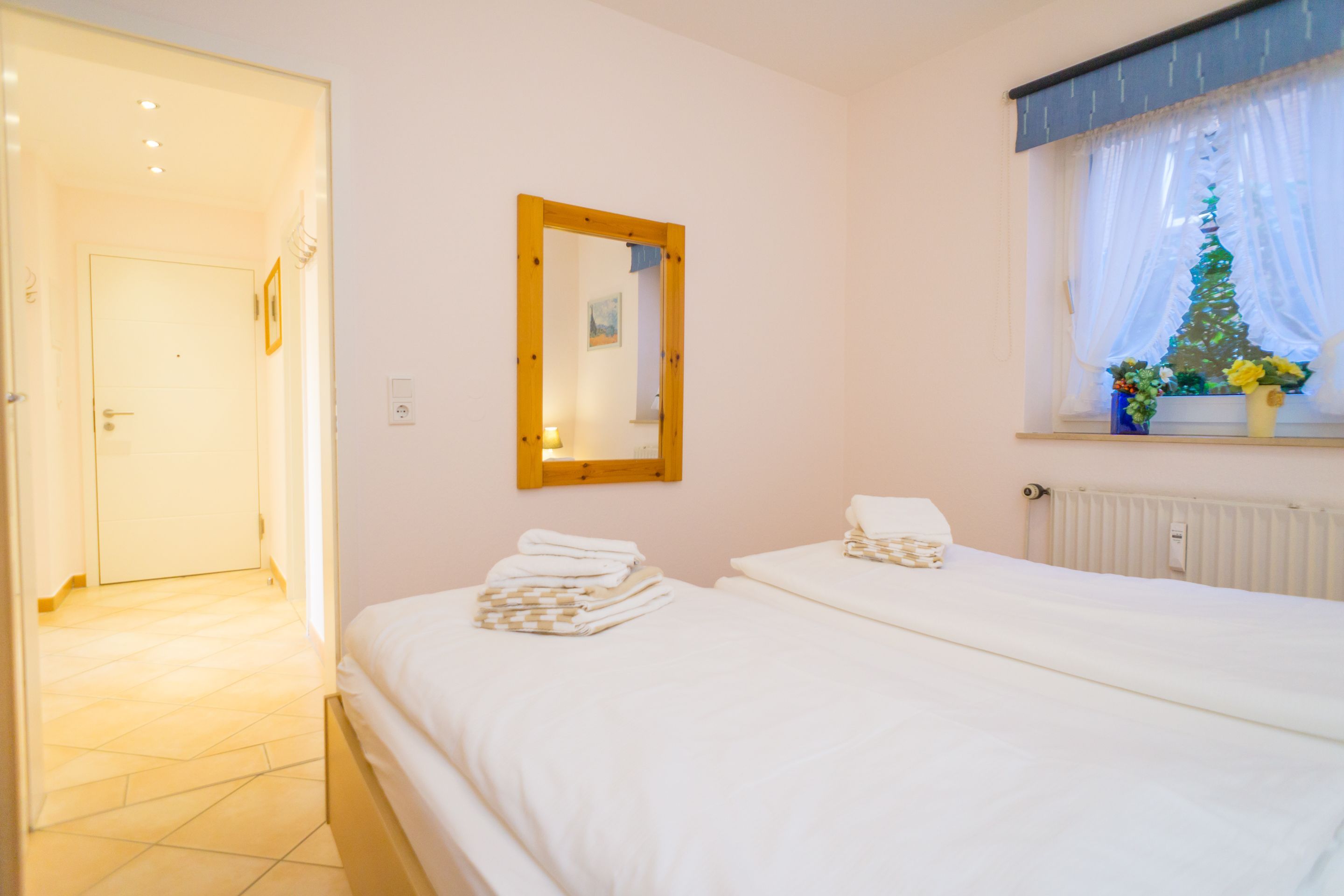 Das Schlafzimmer hat ein gutes Doppelbett (2 Einzelmatratzen Maß jeweils 0,90 x 2 m) und einen Kleiderschrank.