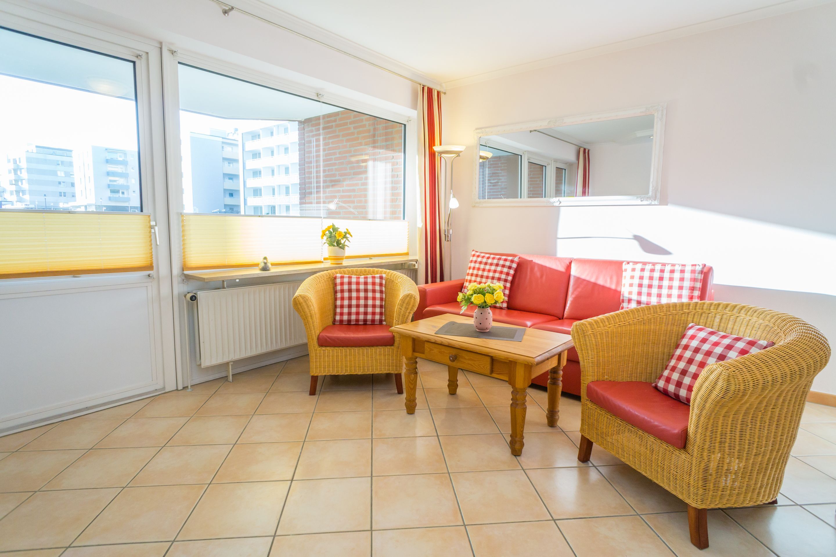 Schicke 2-Zimmer-Ferienwohnung (ca.53qm, Nichtraucher) im Parterre, für max. 4 Personen in Südlage mit Sonnenbalkon mit Balkonmöbeln und Auflagen.