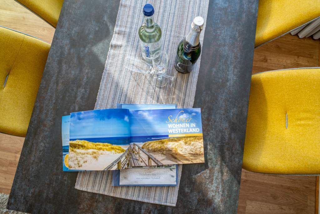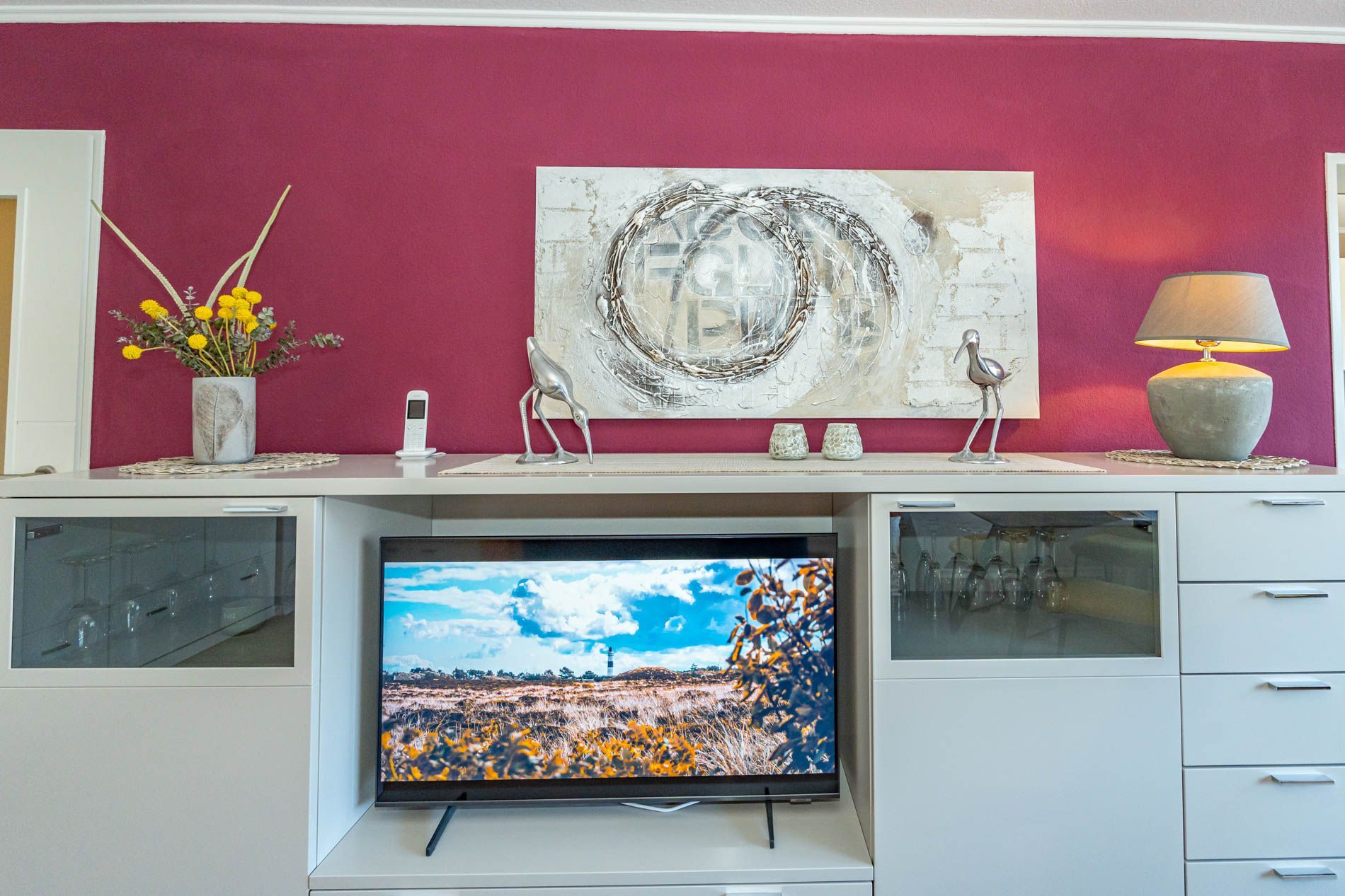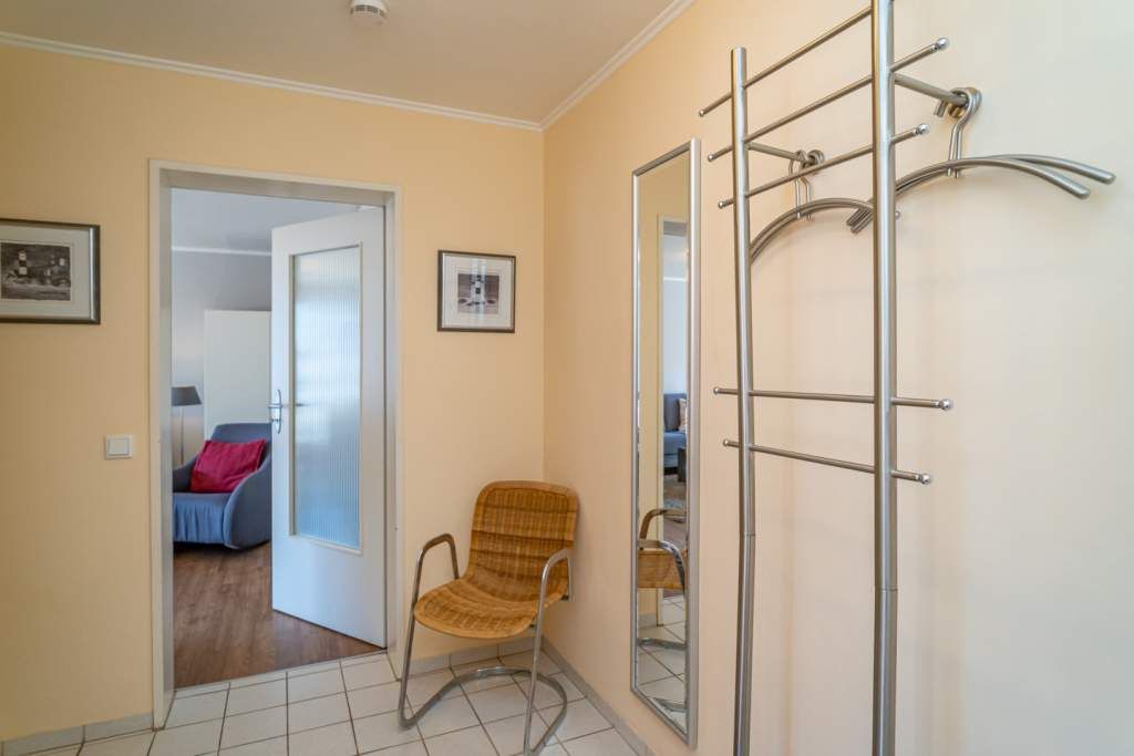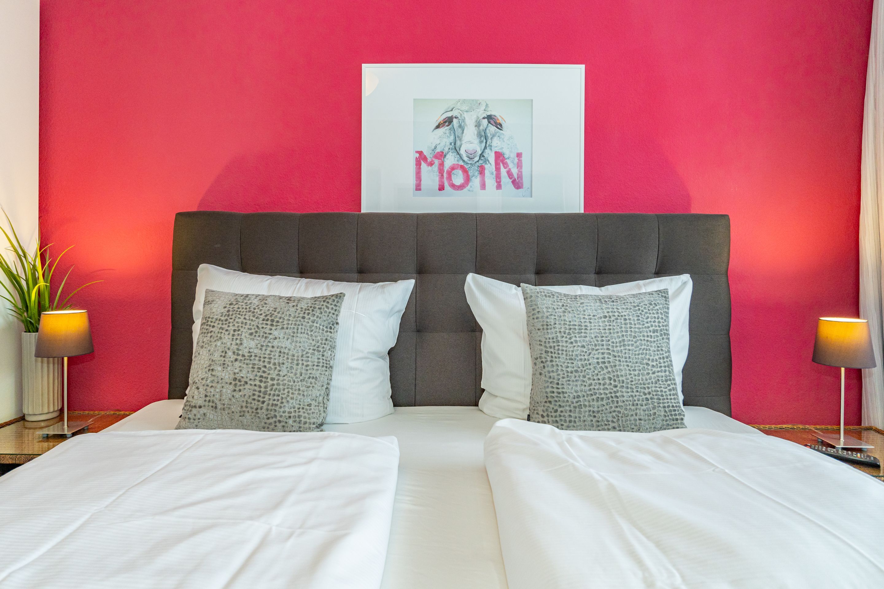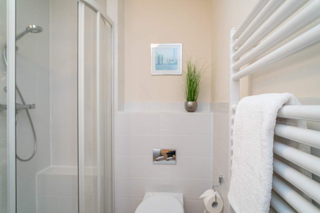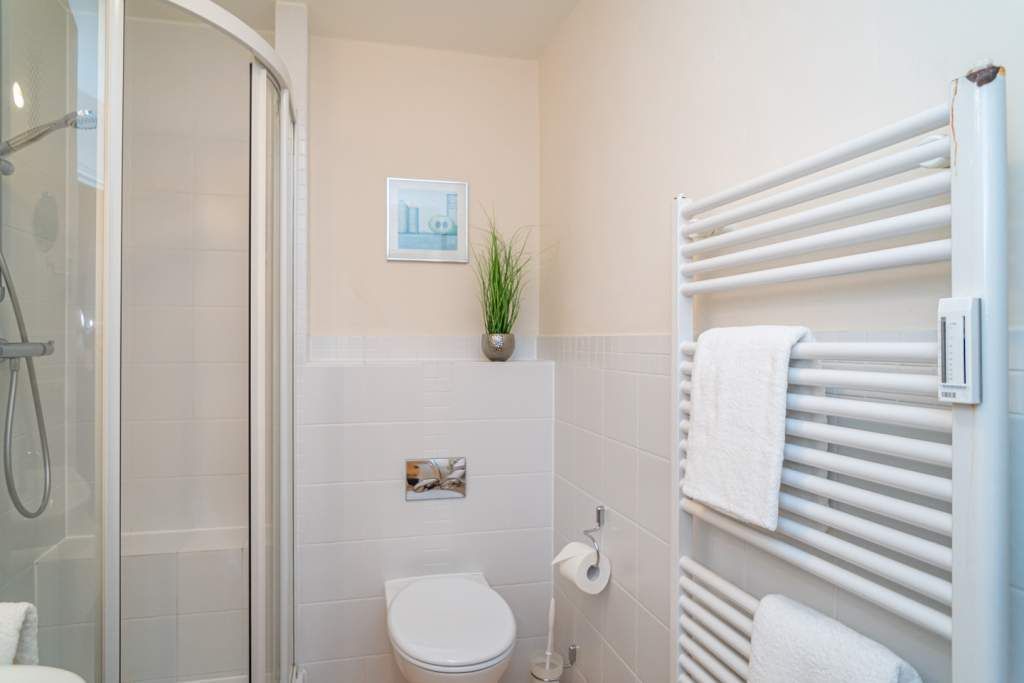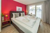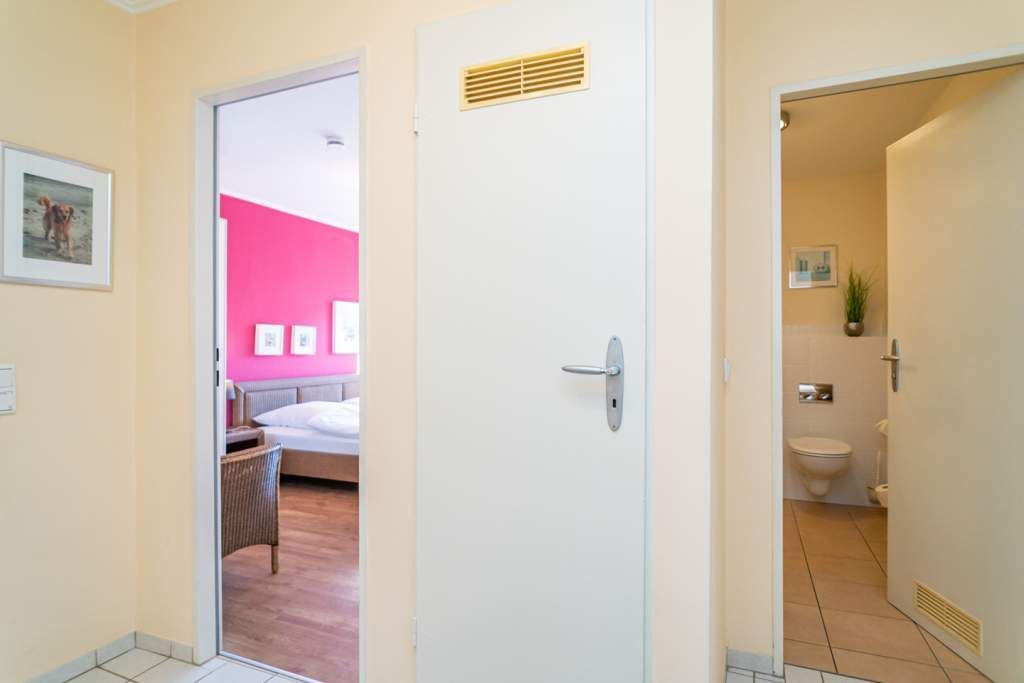 Diese moderne 2-Zimmer-Nichtraucher-Ferienwohnung (ca. 58 qm) in der 2. Etage bietet komfortablen Wohnraum für bis zu 4 Personen. Im Schlafzimmer erwartet Sie ein gemütliches Doppelbett, bestehend aus zwei Einzelmatratzen (je 0,90 x 2,00 m), ergänzt durch stilvolle Nachttische und einen eleganten Sessel in Loom-Ausführung. Das Wohnzimmer überzeugt mit Doppelschrankbetten (je mit Einzelmatratzen von 1,70 x 0,90 m), einem Sat-Flachbild-TV, Telefon und WLAN ideal für flexible Schlafmöglichkeiten und entspannte Abende. Die offene Küche, die ohne trennende Tür direkt in den Wohnbereich integriert ist und über ein Fenster verfügt, lässt keine Wünsche offen: Ausgestattet mit Backofen, Cerankochfeld, Kühlschrank mit Eisfach, Geschirrspüler, Kaffeemaschine, Wasserkocher und Toaster, bietet sie alles, was Sie für die Zubereitung Ihrer Lieblingsgerichte benötigen. Das moderne Duschbad/WC rundet das Raumkonzept ab.