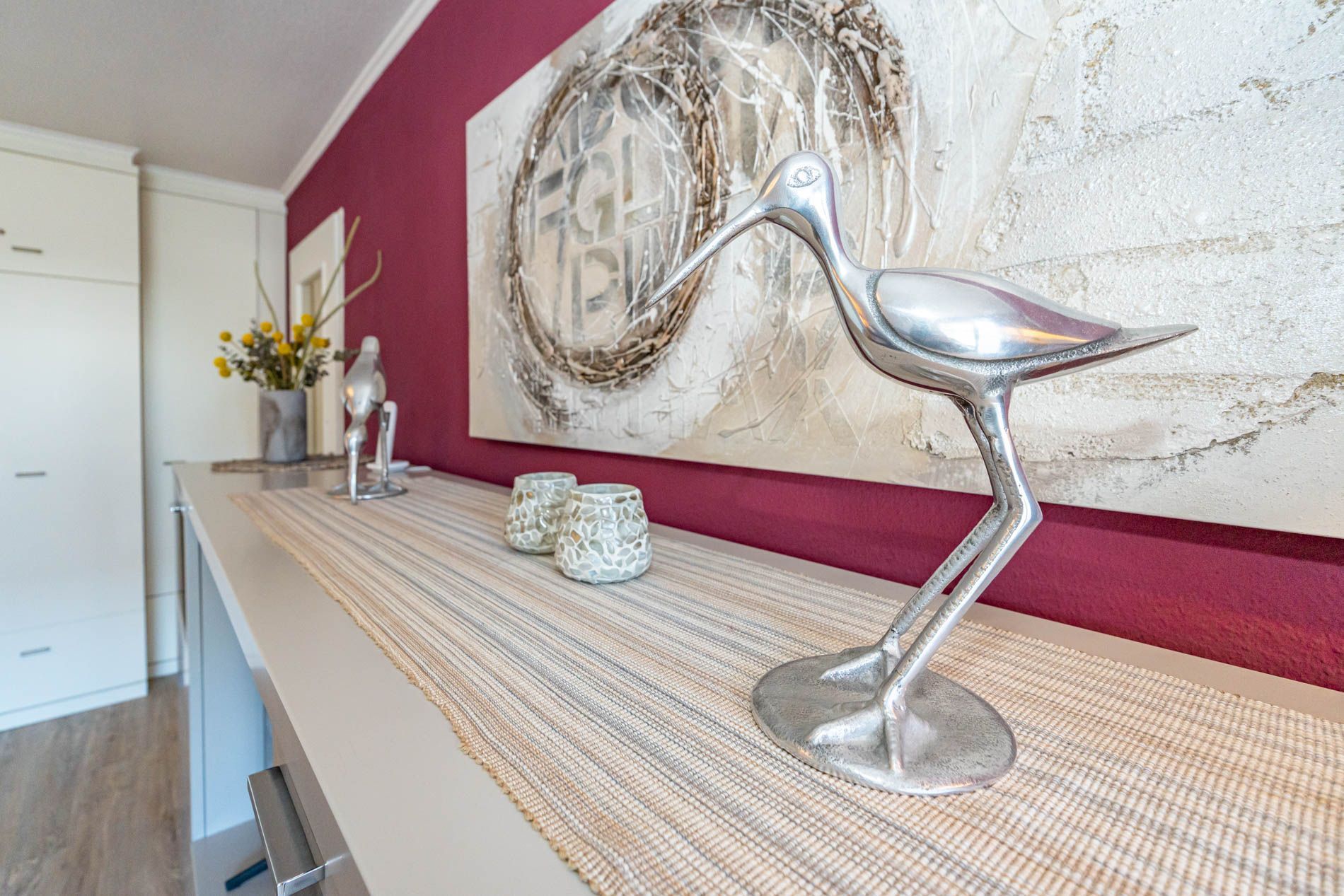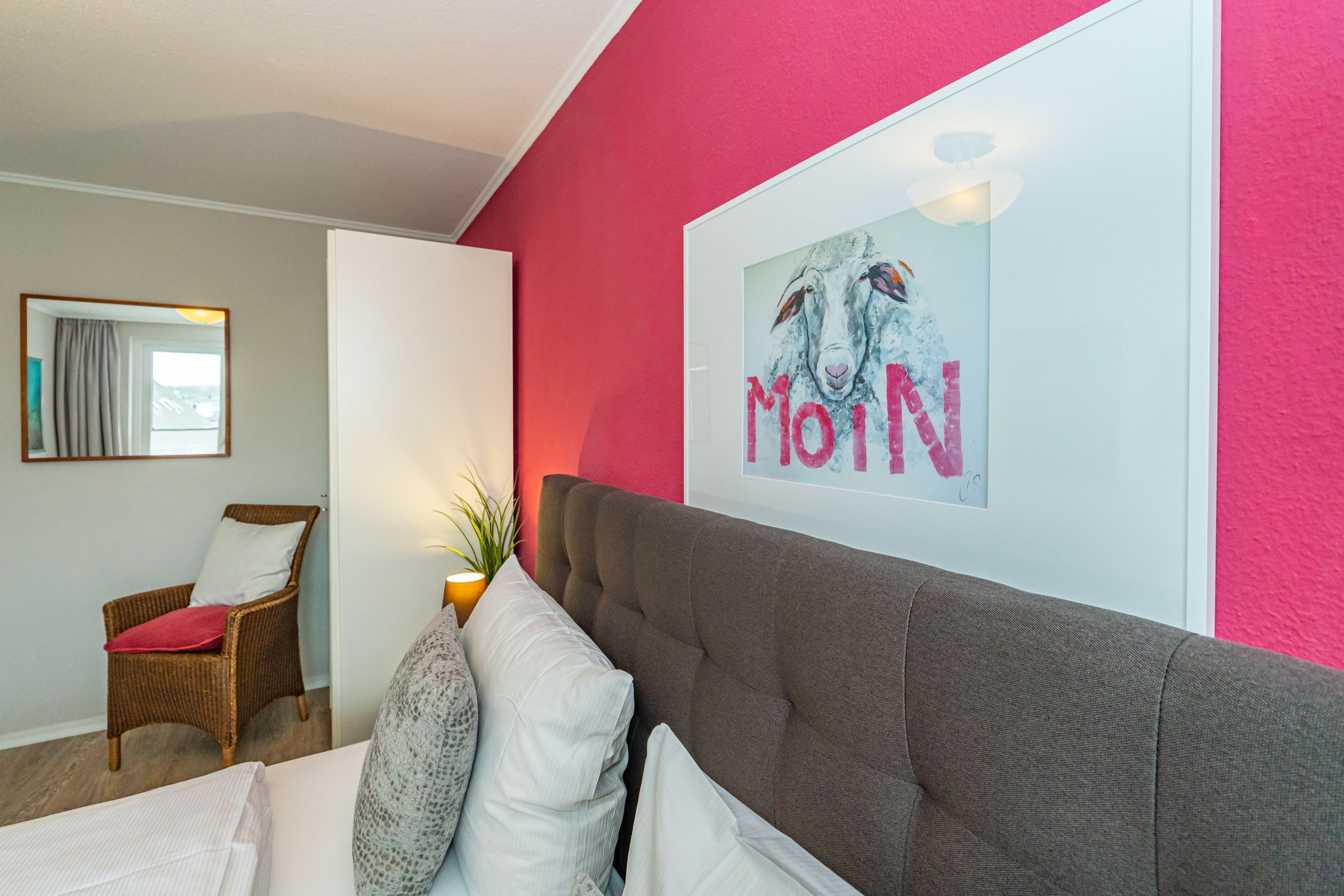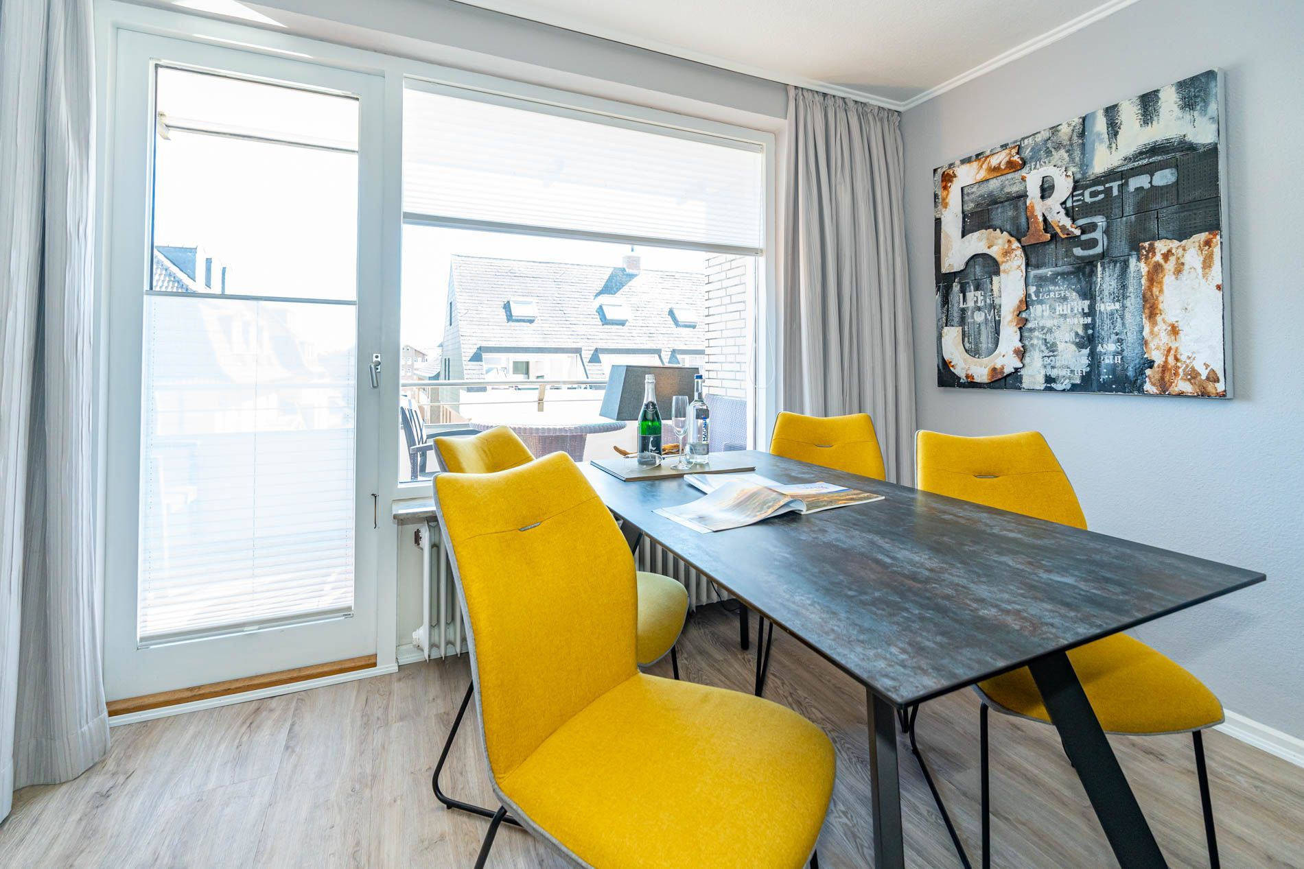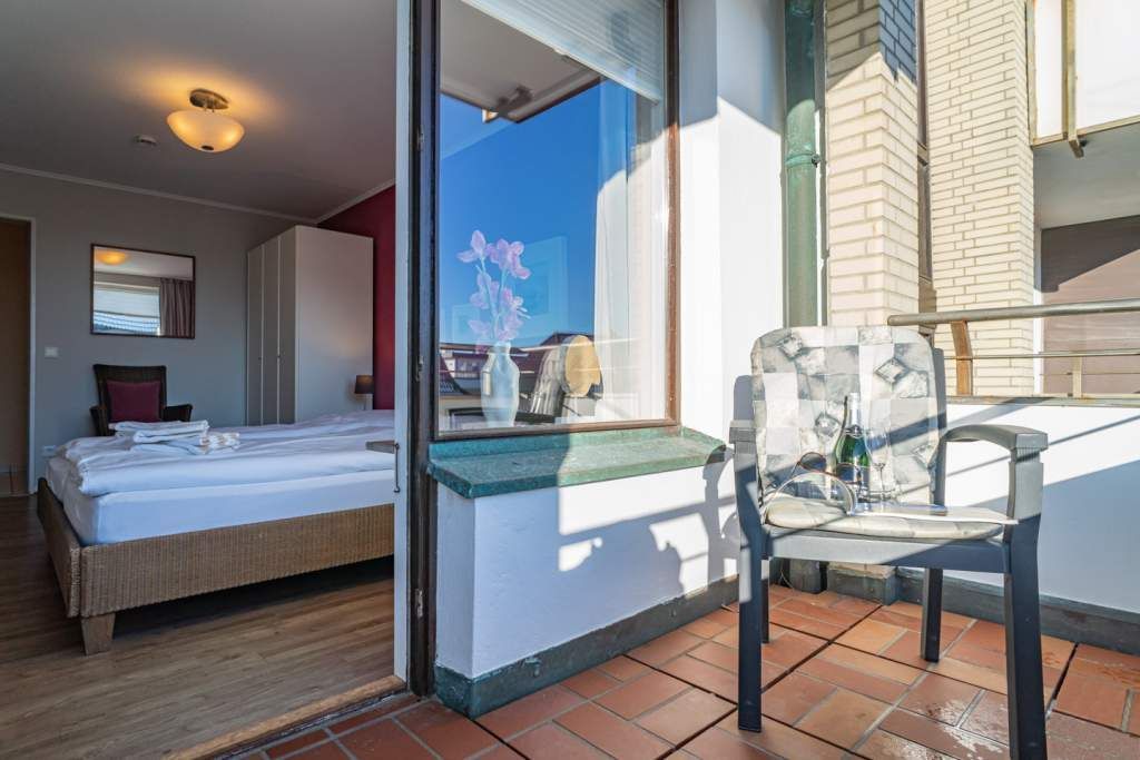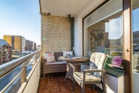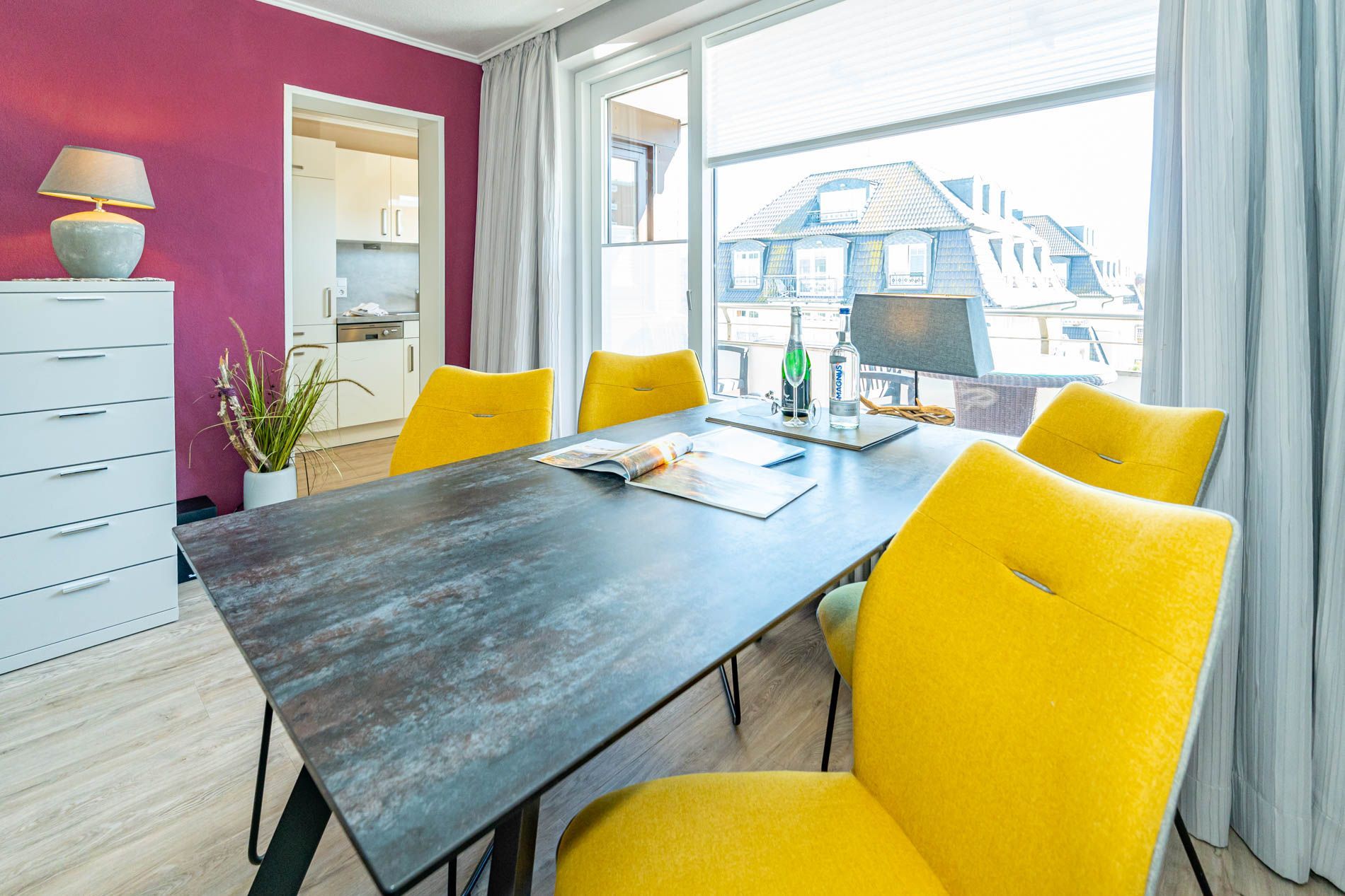 Diese moderne 2-Zimmer-Nichtraucher-Ferienwohnung (ca. 58 qm) in der 2. Etage bietet komfortablen Wohnraum für bis zu 4 Personen. Im Schlafzimmer erwartet Sie ein gemütliches Doppelbett, bestehend aus zwei Einzelmatratzen (je 0,90 x 2,00 m), ergänzt durch stilvolle Nachttische und einen eleganten Sessel in Loom-Ausführung. Das Wohnzimmer überzeugt mit Doppelschrankbetten (je mit Einzelmatratzen von 1,70 x 0,90 m), einem Sat-Flachbild-TV, Telefon und WLAN ideal für flexible Schlafmöglichkeiten und entspannte Abende. Die offene Küche, die ohne trennende Tür direkt in den Wohnbereich integriert ist und über ein Fenster verfügt, lässt keine Wünsche offen: Ausgestattet mit Backofen, Cerankochfeld, Kühlschrank mit Eisfach, Geschirrspüler, Kaffeemaschine, Wasserkocher und Toaster, bietet sie alles, was Sie für die Zubereitung Ihrer Lieblingsgerichte benötigen. Das moderne Duschbad/WC rundet das Raumkonzept ab.