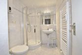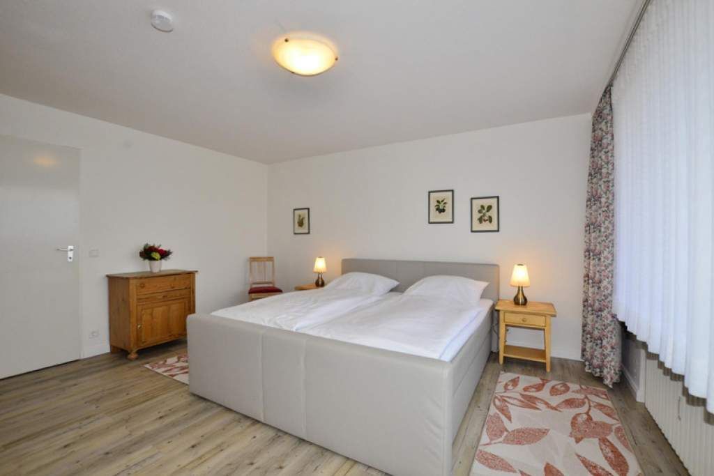Kaffeemaschine, Wasserkocher und Toaster gehören zur Grundausstattung. Das großzügige Schlafzimmer hat ein Doppelbett (1,80 x 2,00 m, Komforthöhe 23 cm), einen geräumigen Kleiderschrank und bietet Zugang zu einer weiteren Loggia. Das neuwertige, hellgeflieste Bad hat eine Dusche, einen Waschtisch, einen Handtuchtrockner und WC.