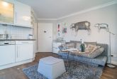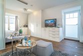 Die exklusive, mit Designerboden ausgelegte 1-Zimmer-Nichtraucher-Ferienwohnung (ca. 33 qm) in der 3. Etage mit Nordwest-Balkon (mit Balkonmöbeln und Auflagen) ist ideal für 2 Personen geeignet.