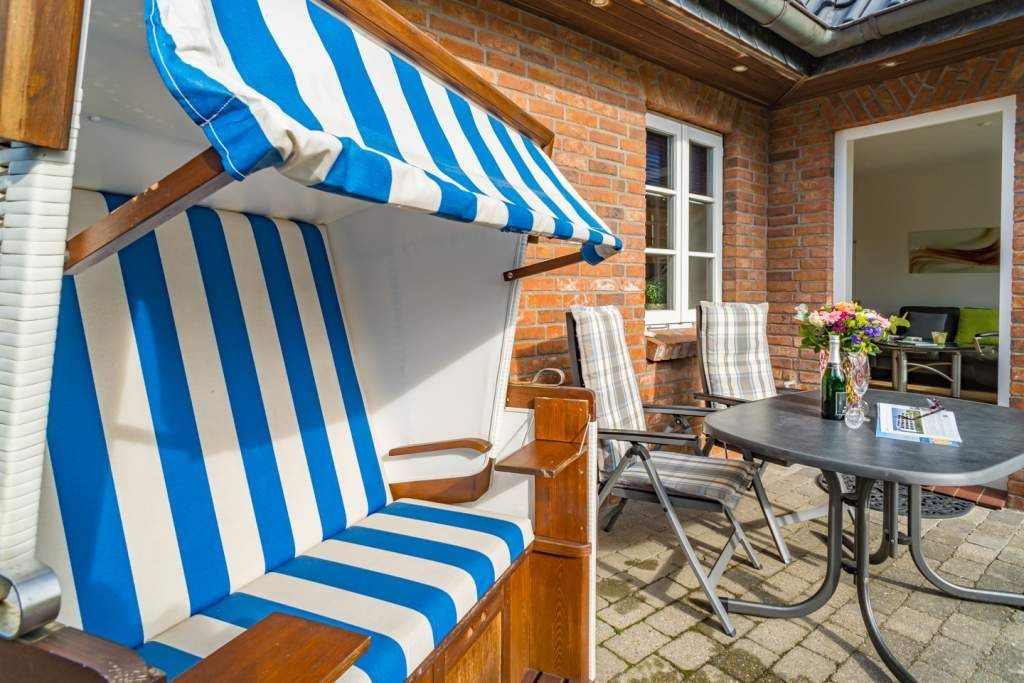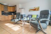 Exklusive und besonders großzügige 2-Zimmer-Nichtraucher-Ferienwohnung (ca. 62 qm) auf einer Ebene im EG für max. 2 Personen und 1 Kleinkind mit Sonnenterrasse (Südausrichtung, mit Gartenmöbeln, Auflagen und Strandkorb)