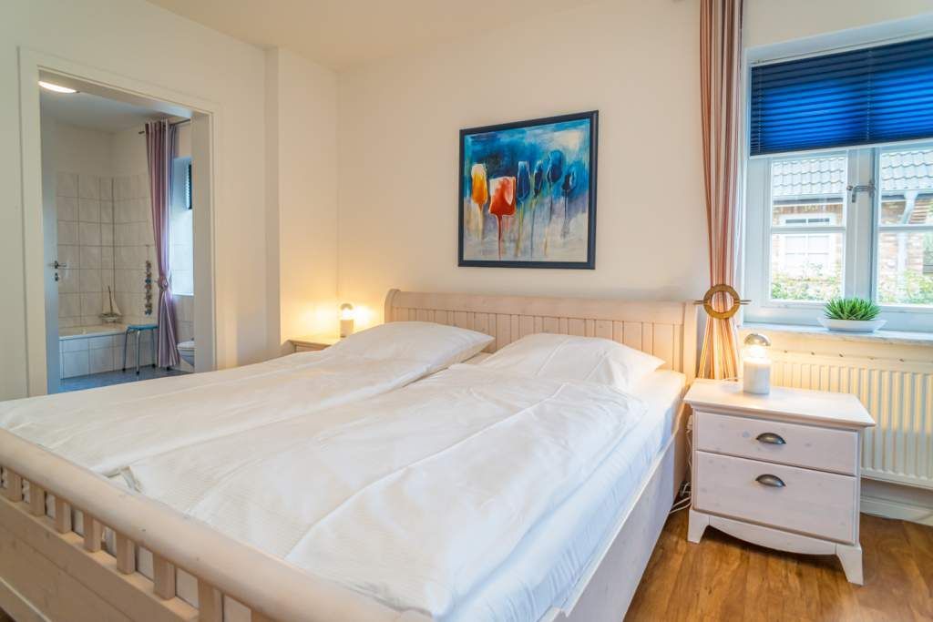 Das Schlafzimmer ist mit einem guten Doppelbett mit zwei Einzelmatratzen (je 0,90 x 2,00 m) für hohen Schlafkomfort ausgestattet.