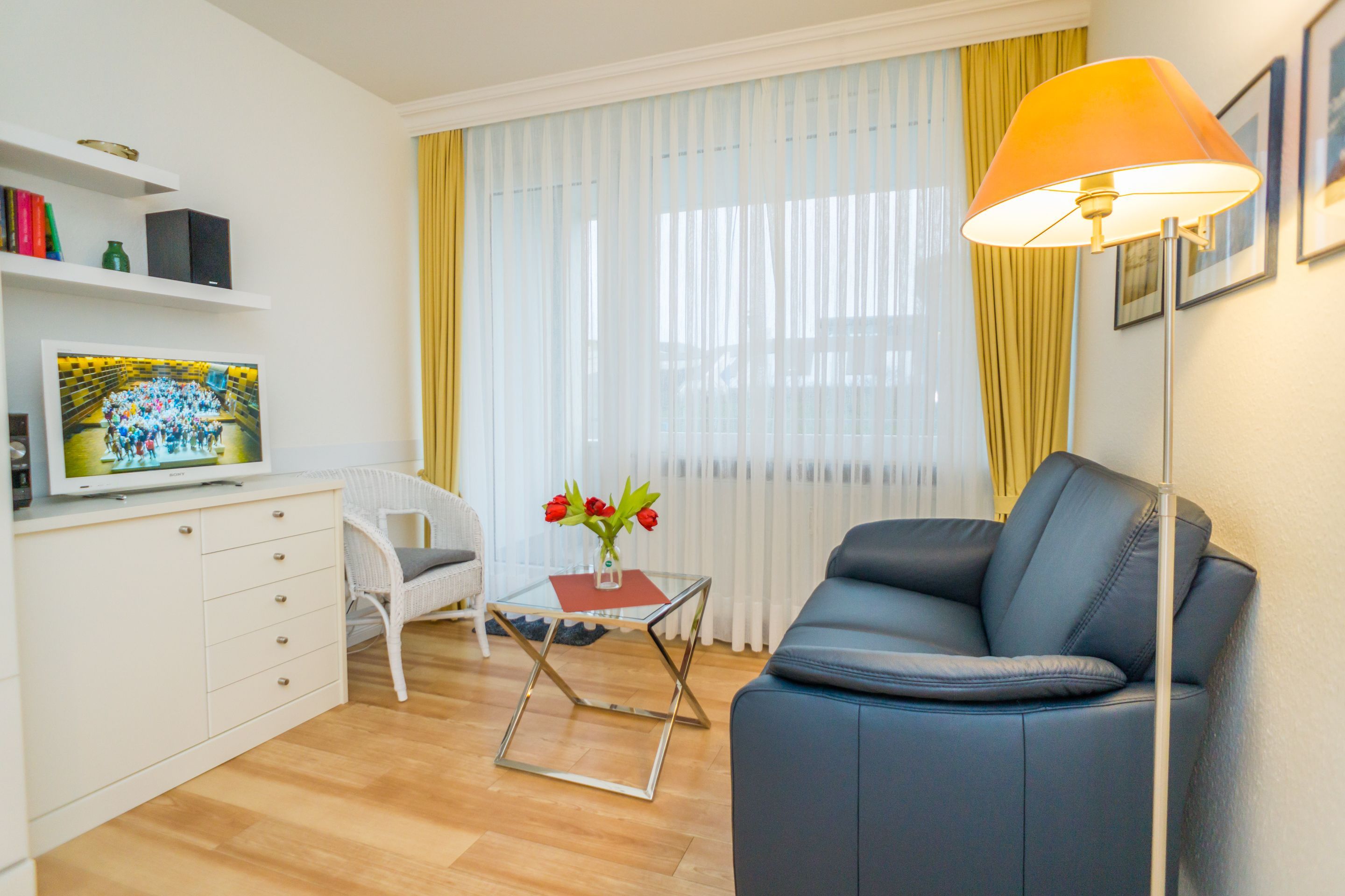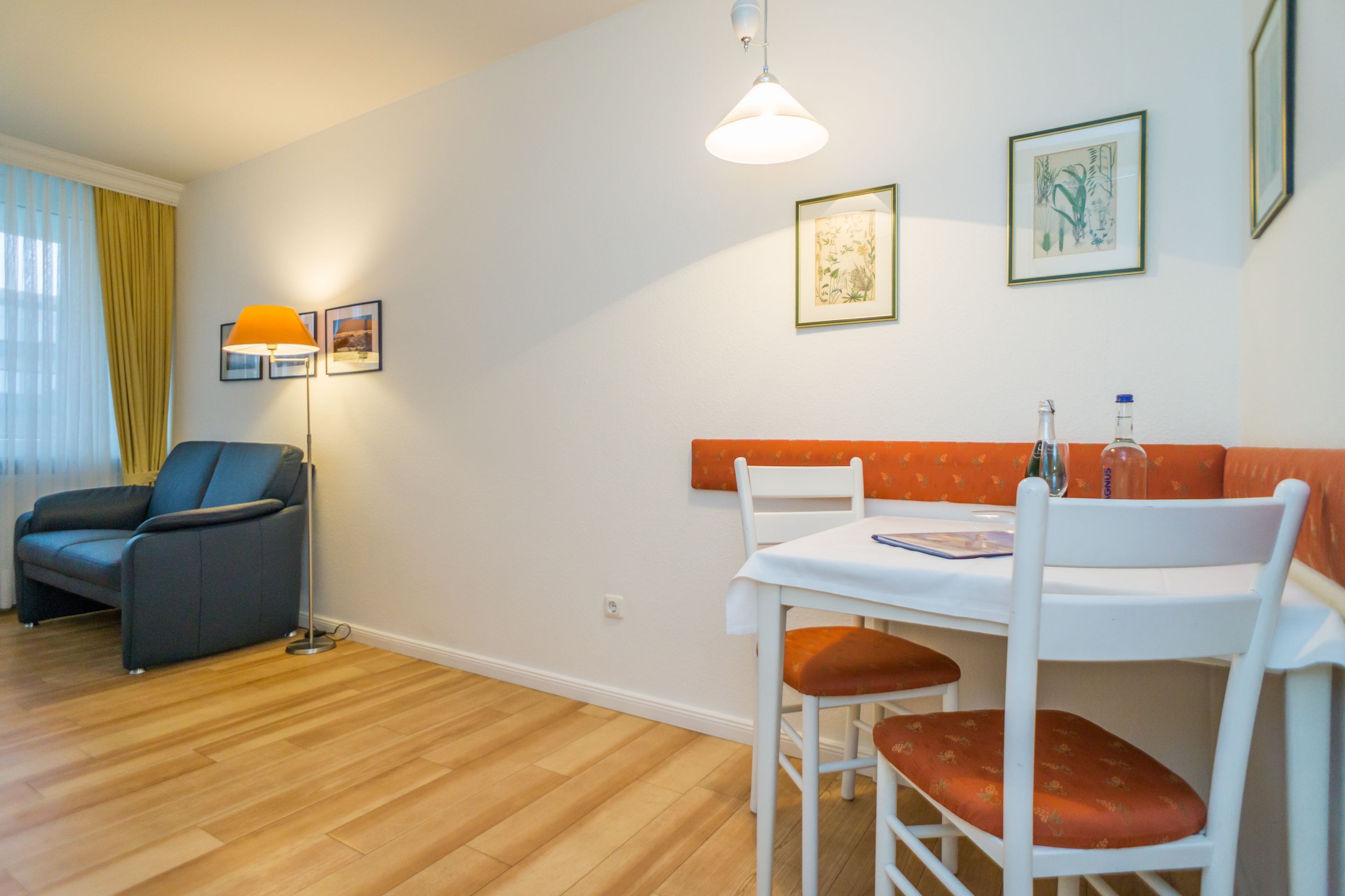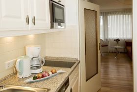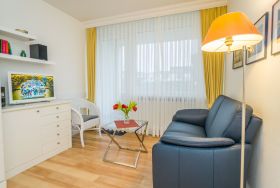 1-Zimmer-Nichtraucher-Ferienwohnung mit gutem Komfort (ca. 24 qm) im Hochparterre zur Seeseite mit Westloggia (Nachmittagssonne, mit Balkonmöbeln) für max. 2 Personen.