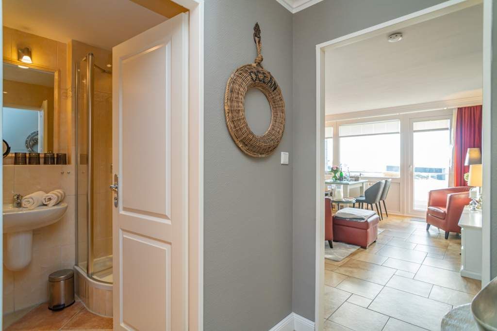 Aufwendig ausgestattete 2-Zimmer-Ferienwohnung mit traumhaftem Meerblick (ca. 51 qm) in der 4. Etage zur Seeseite für bis zu 4 Personen mit Westloggia (Nachmittagssonne, mit Balkonmöbeln und Auflagen), Nichtraucher.
