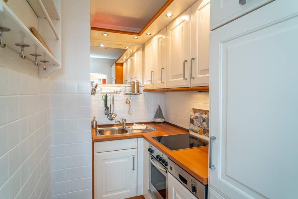 Die gut ausgestattete Küche besitzt einen Geschirrspüler, ein Cerankochfeld (4 Felder) mit Backofen und einen Kühlschrank mit 3-Sterne-Gefrierfach.