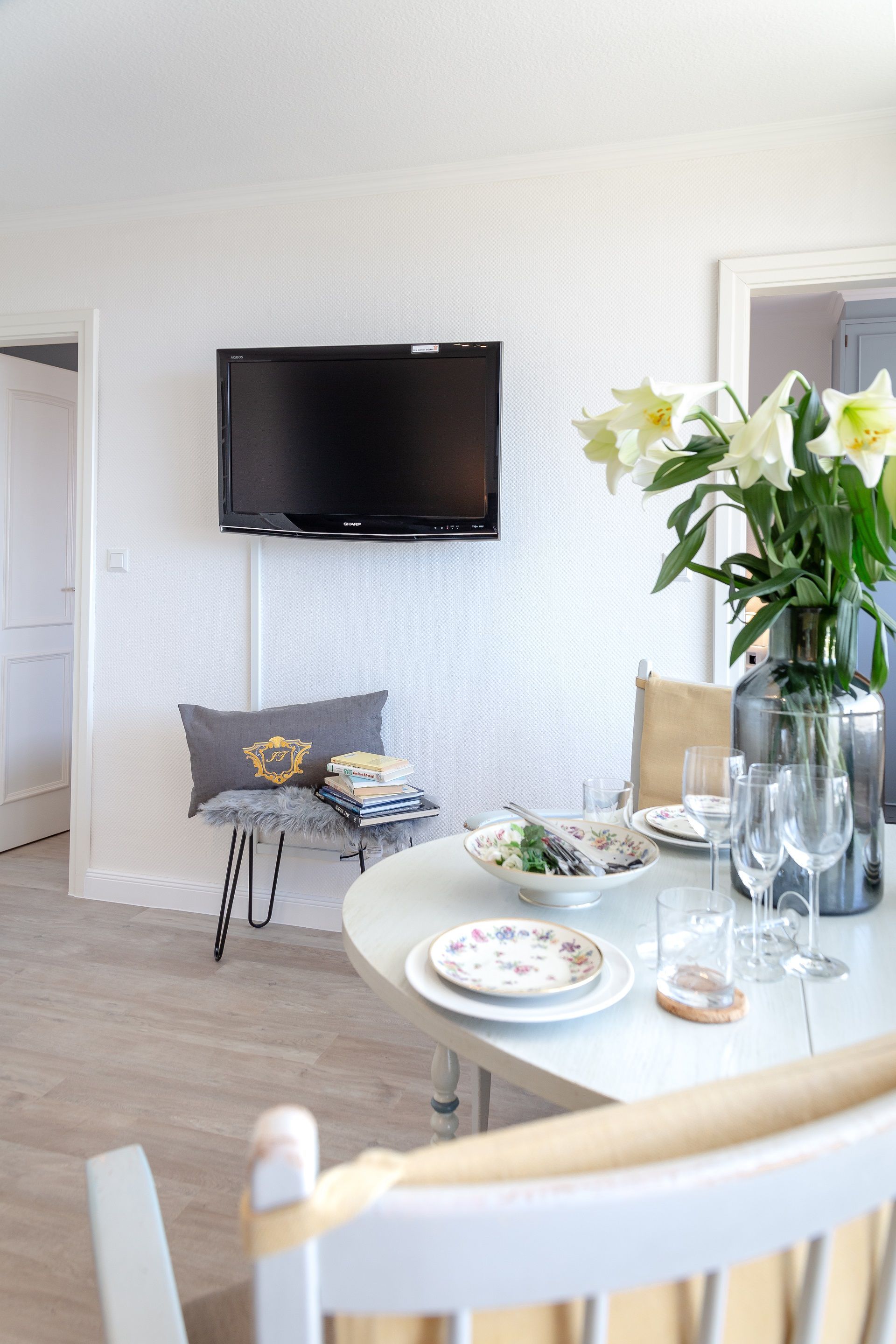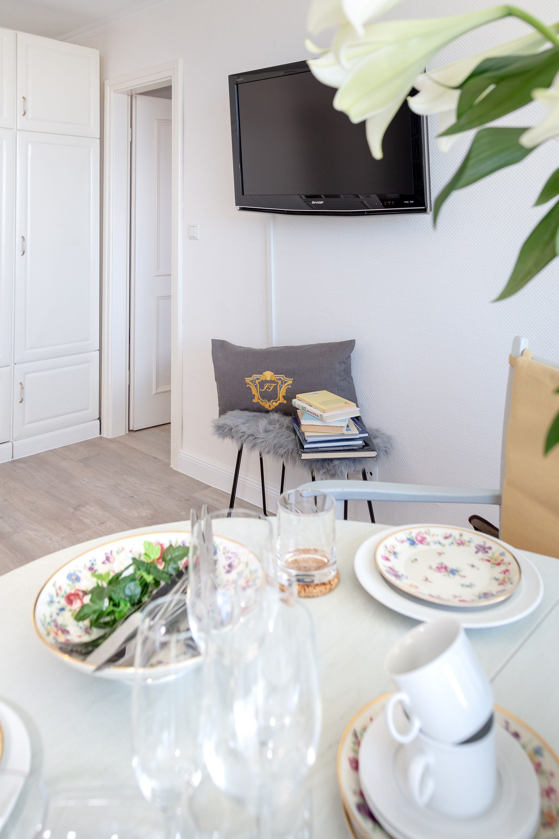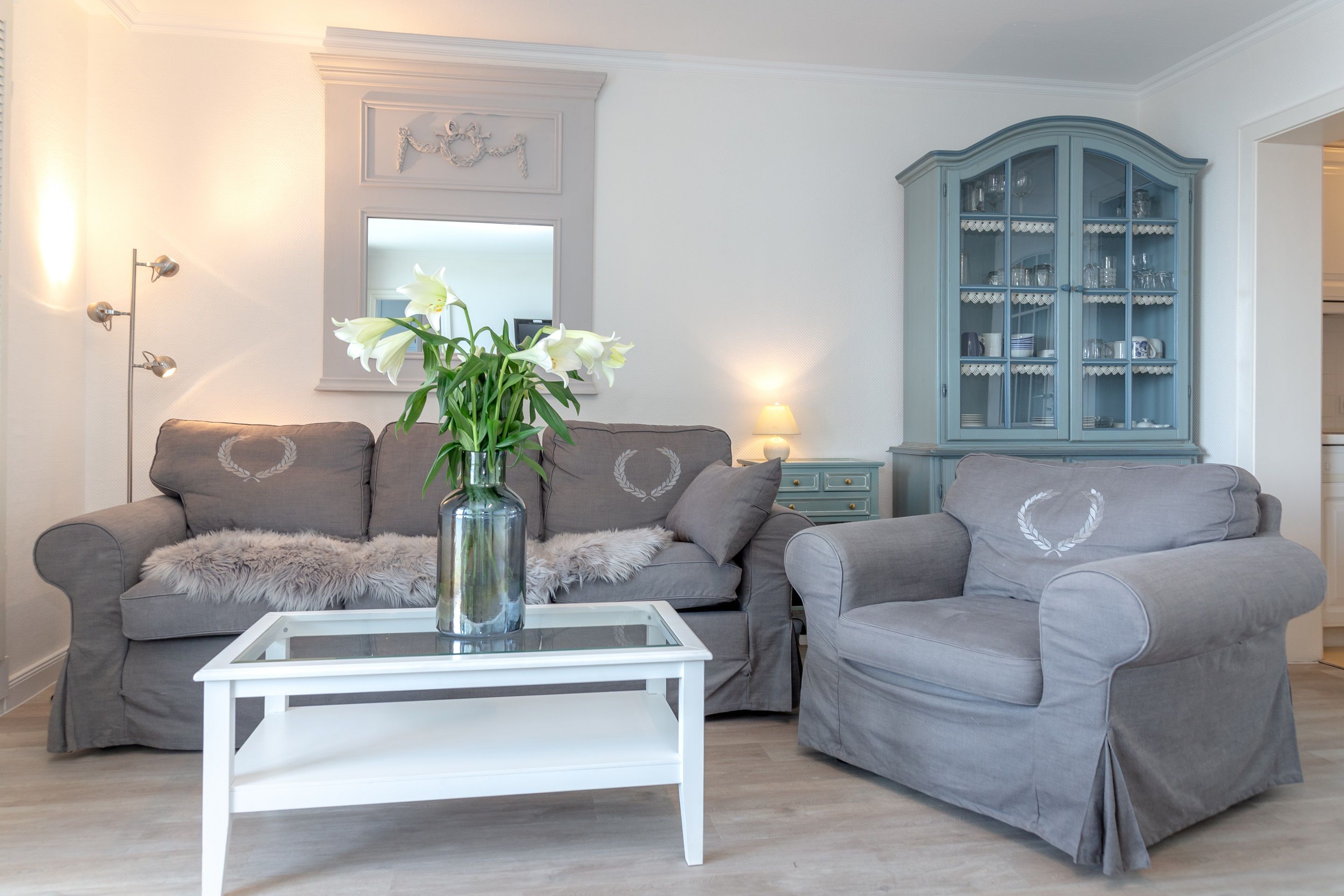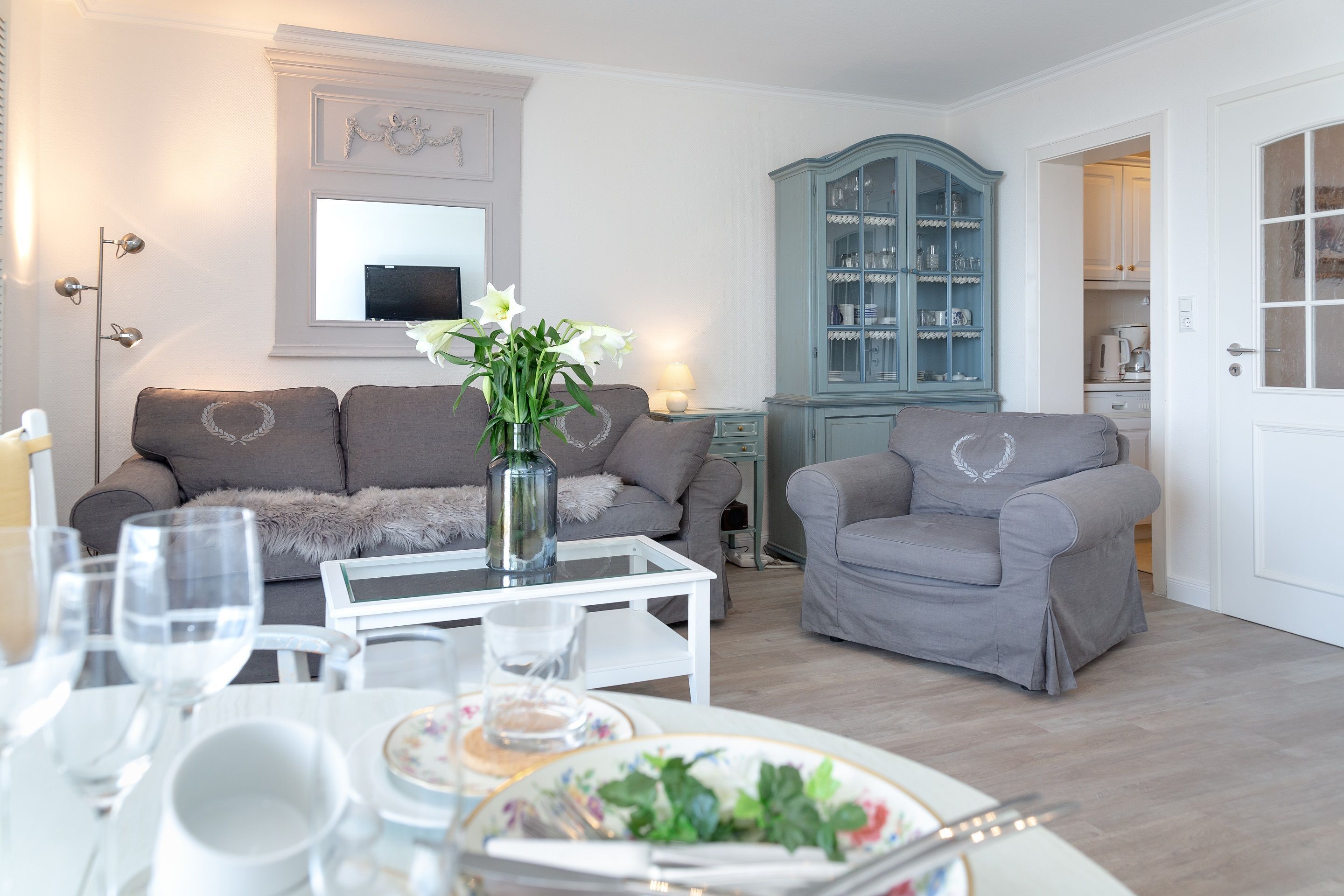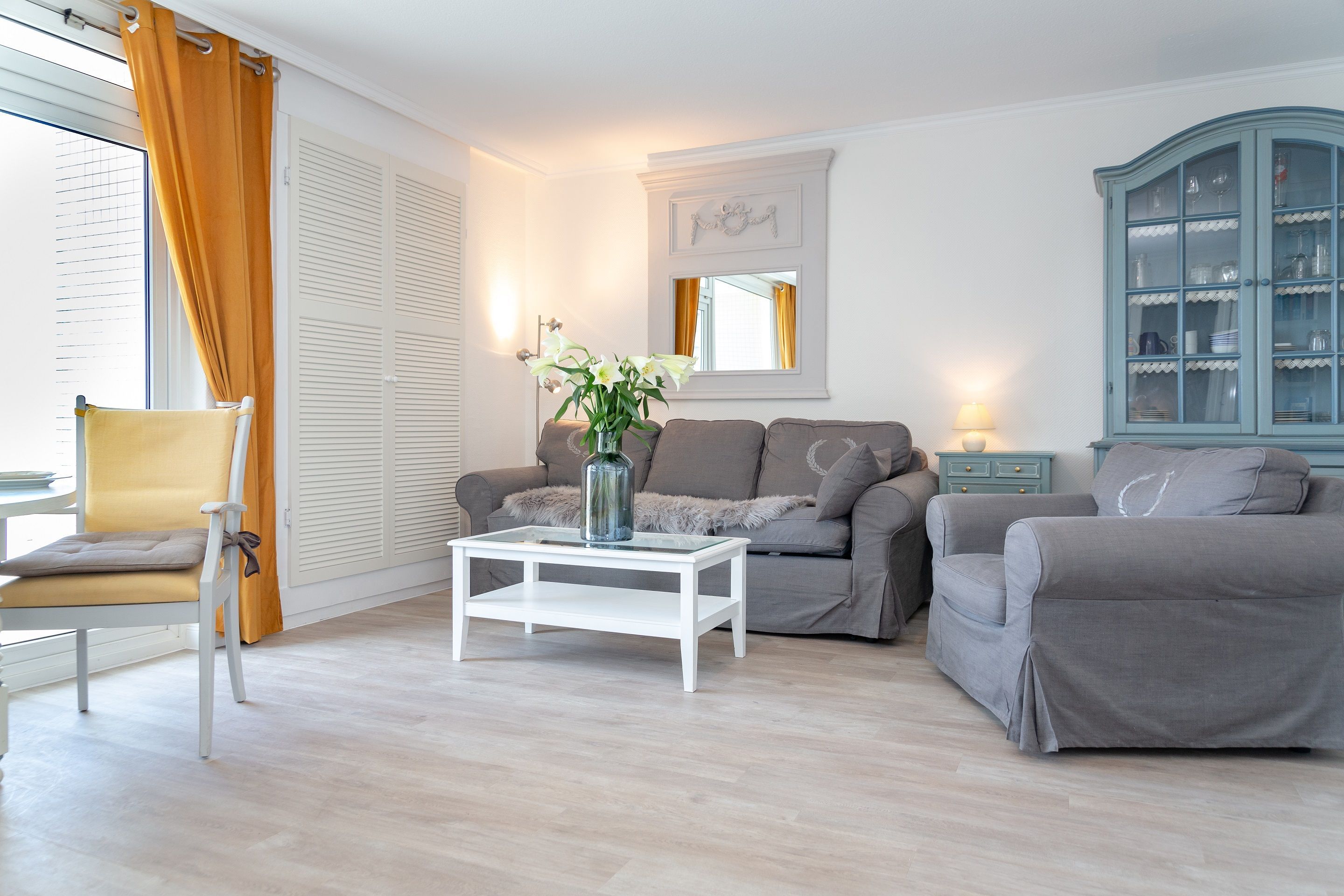Der Wohnraum besteht aus einer Sitzgarnitur (Drei-Sitzer-Couch und Sessel), einem Doppelschrankbett, einem Essplatz, einem Sat-Flachbild-TV, einer Radio/CD-Anlage und einem Telefon.