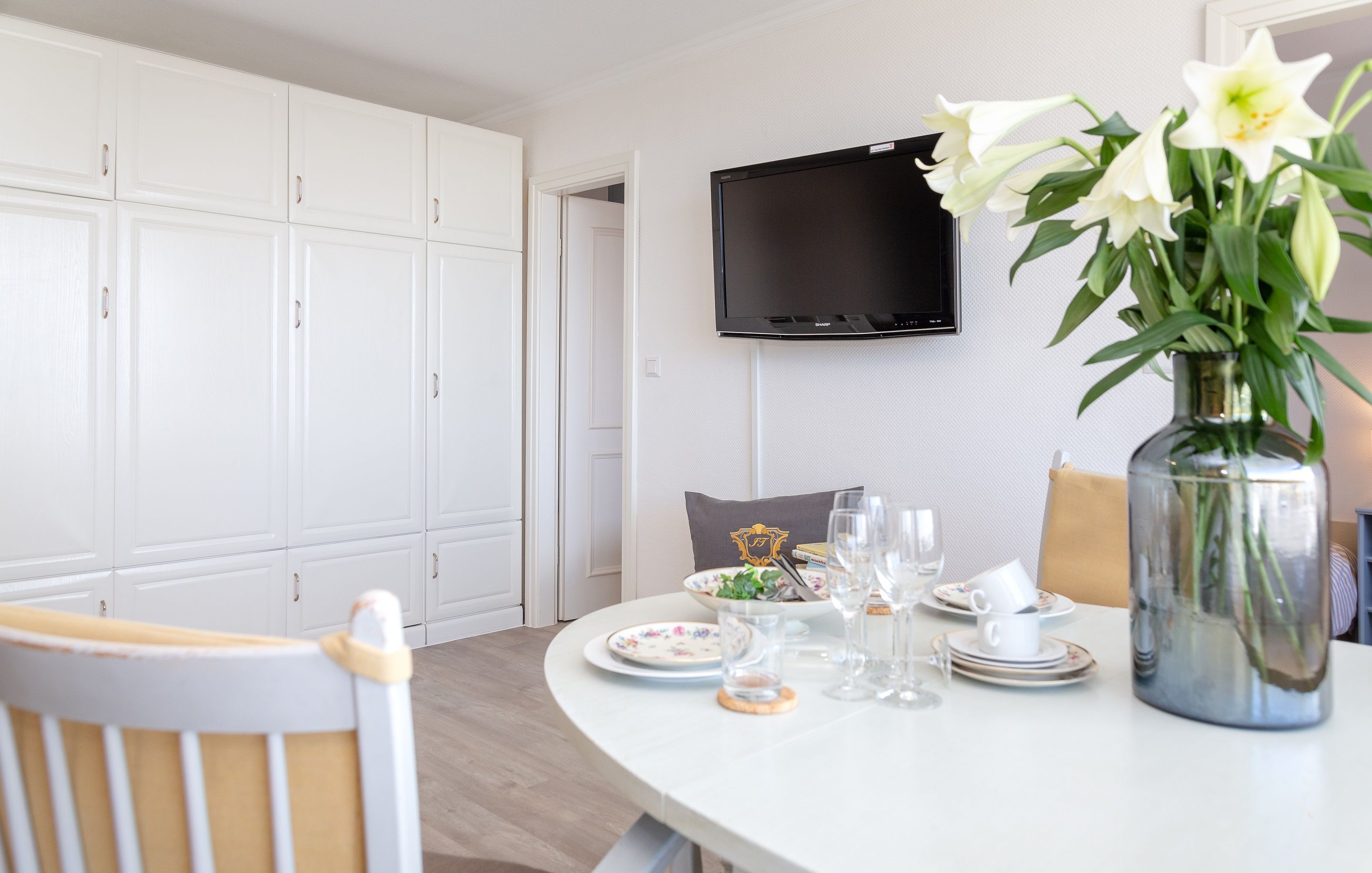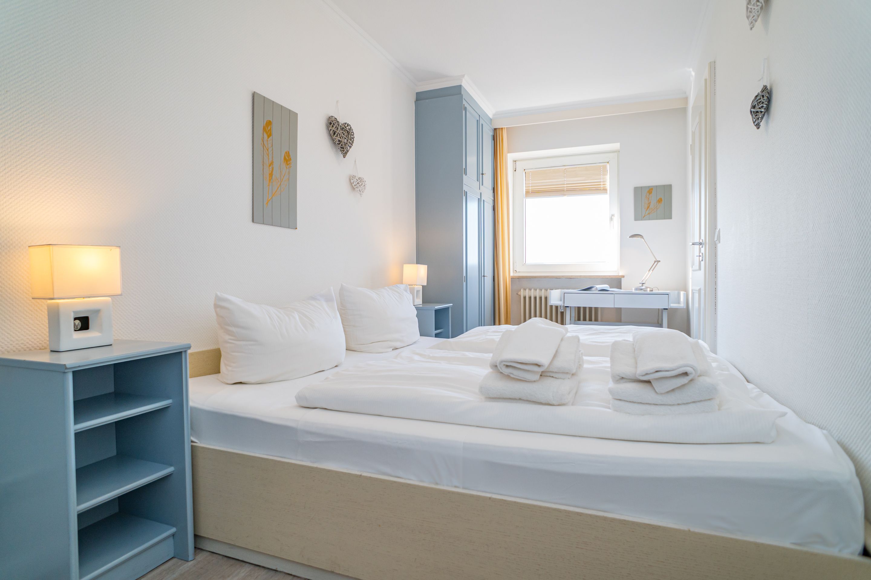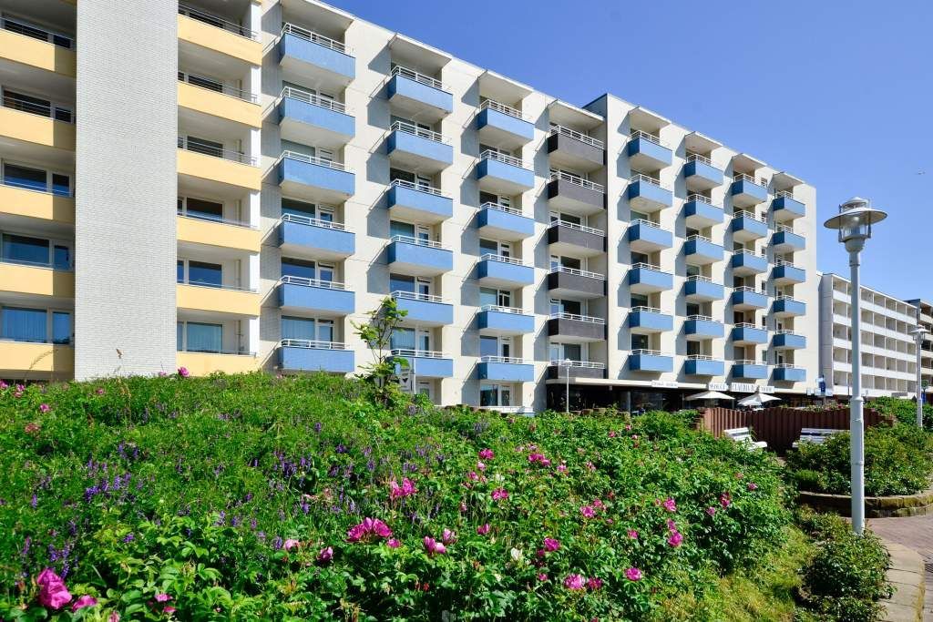 2-Zimmer-Nichtraucher-Ferienwohnung (ca. 50 qm) in der 5. Etage mit Meerblick und Westloggia (Seeseite, mit Balkonmöbeln und Auflagen) für max. 4 Personen.