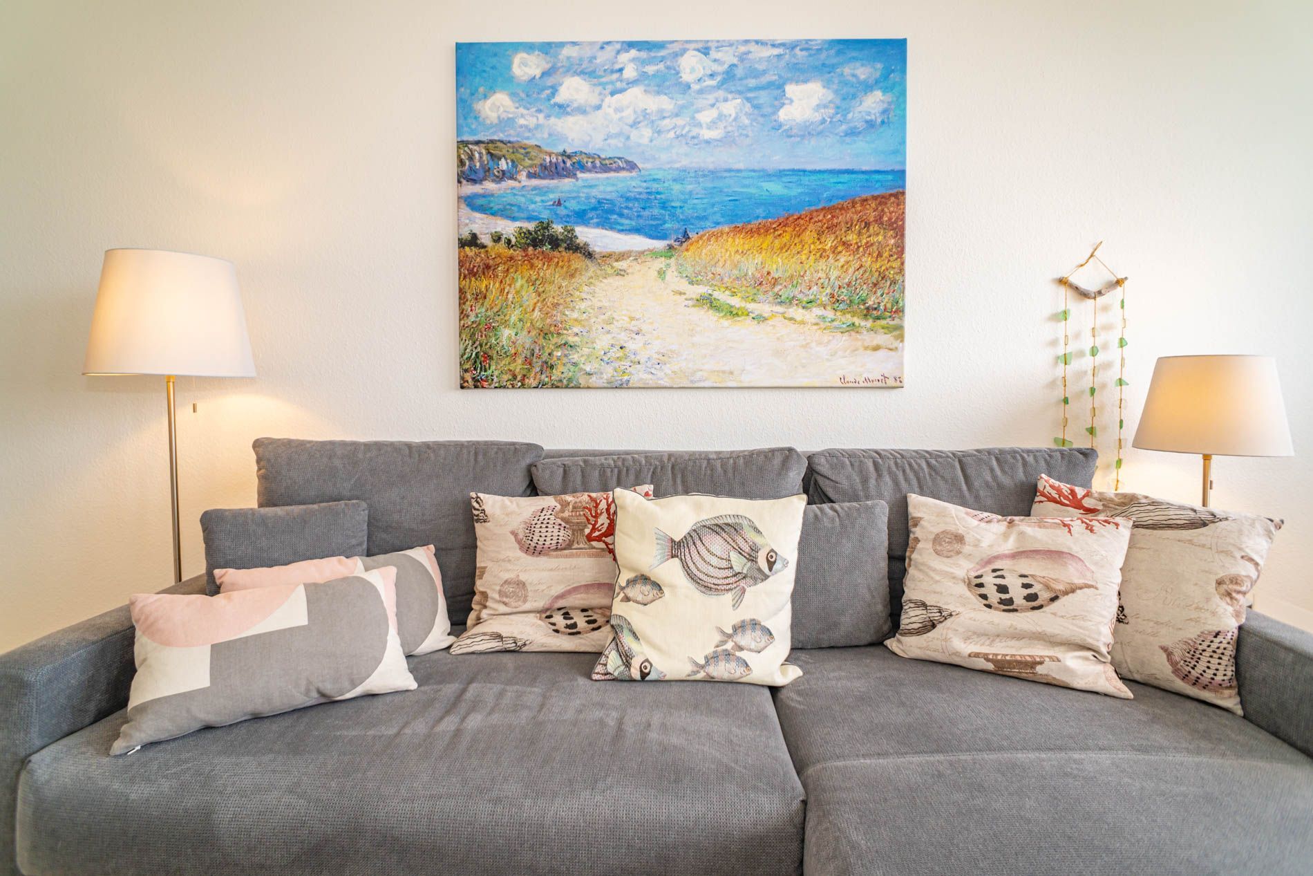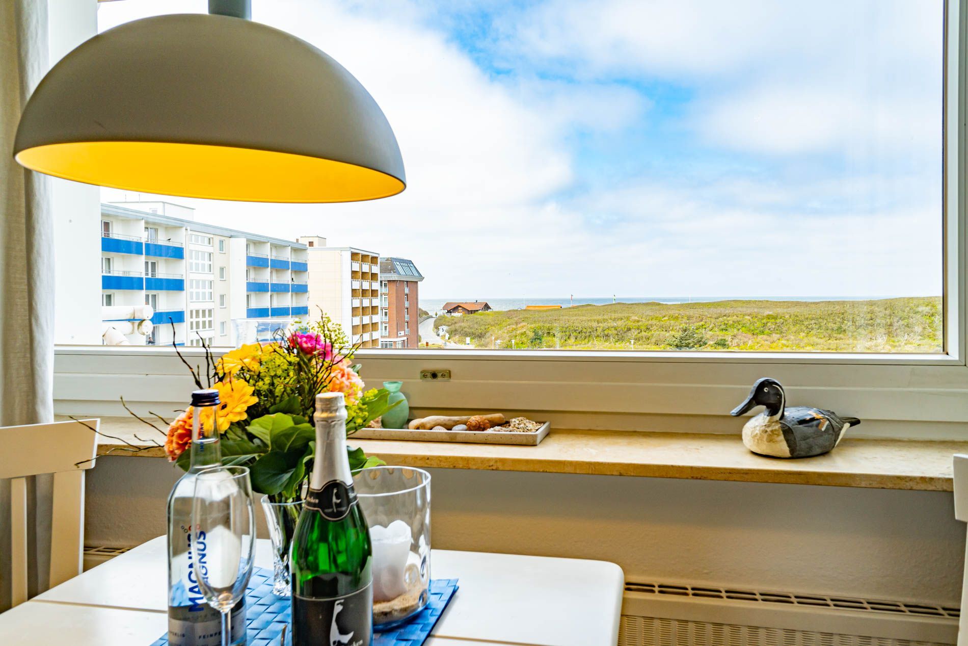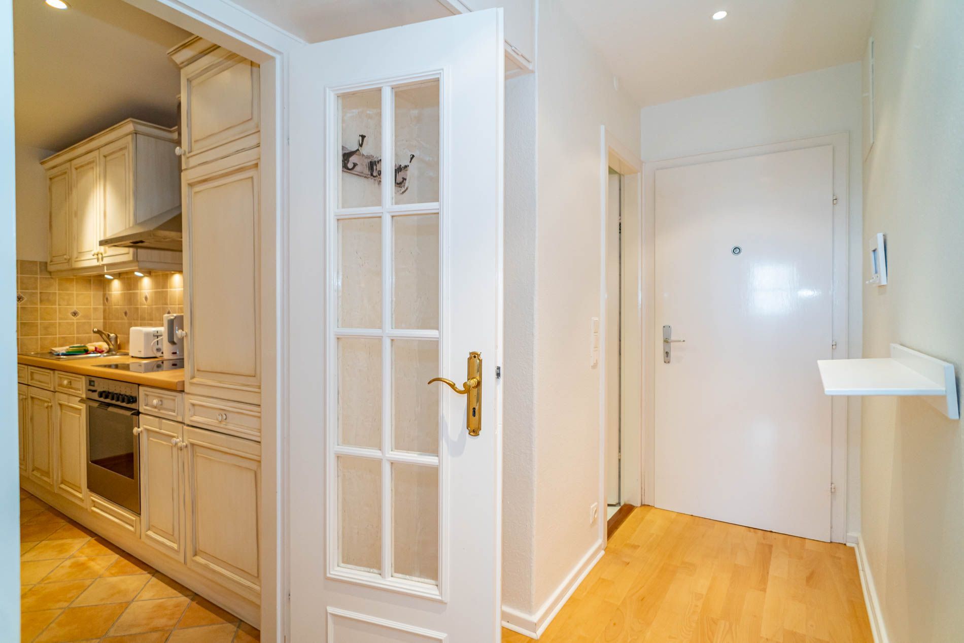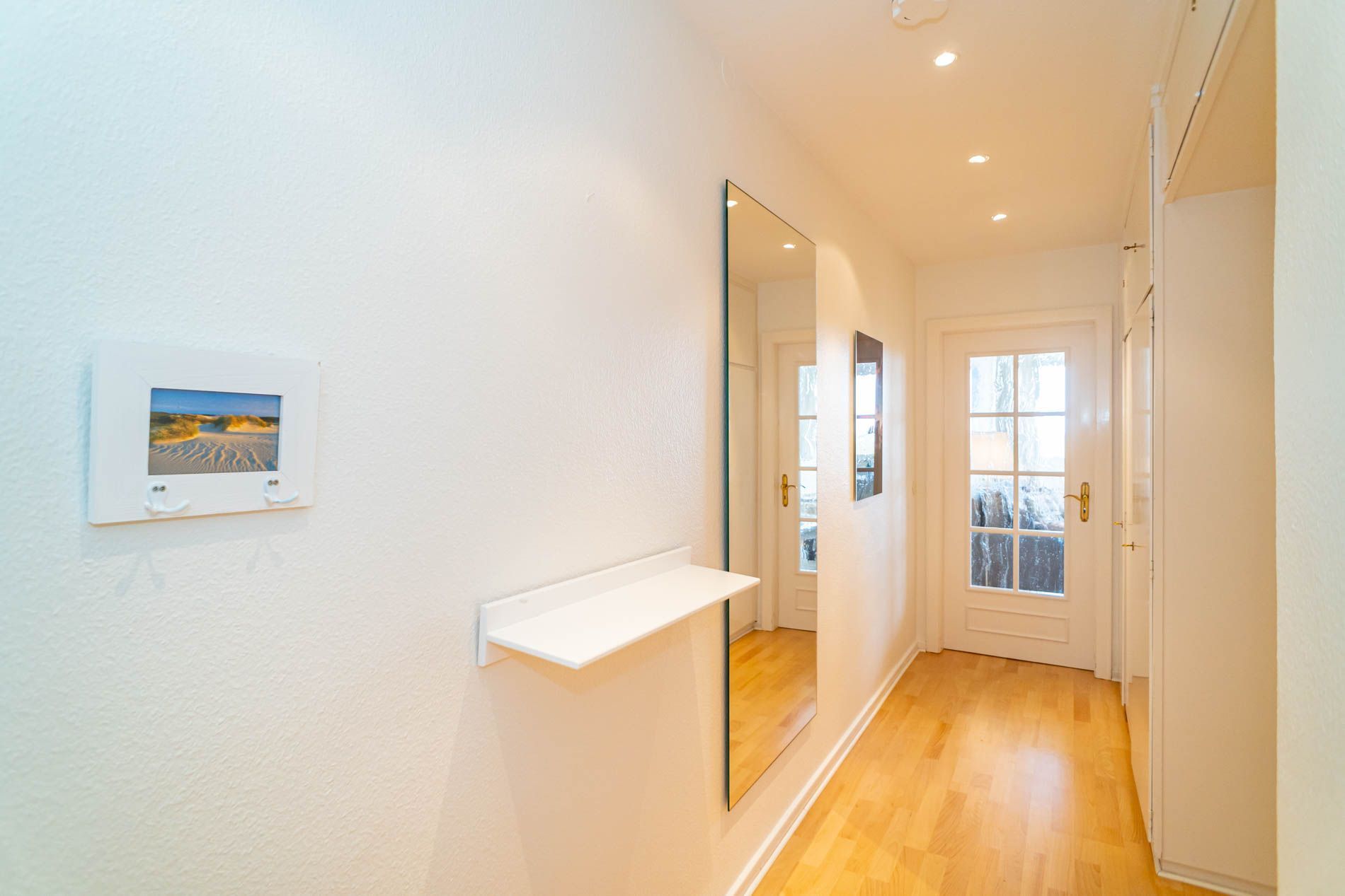 Großzügige 1-Zimmer-Ferienwohnung (ca. 48,5 qm) für 2 Personen, in der Nähe des Übergangs zu Promenade und Strand, in der 4. Etage mit direktem Meerblick, Balkon zur Seeseite mit Balkonmöbeln.