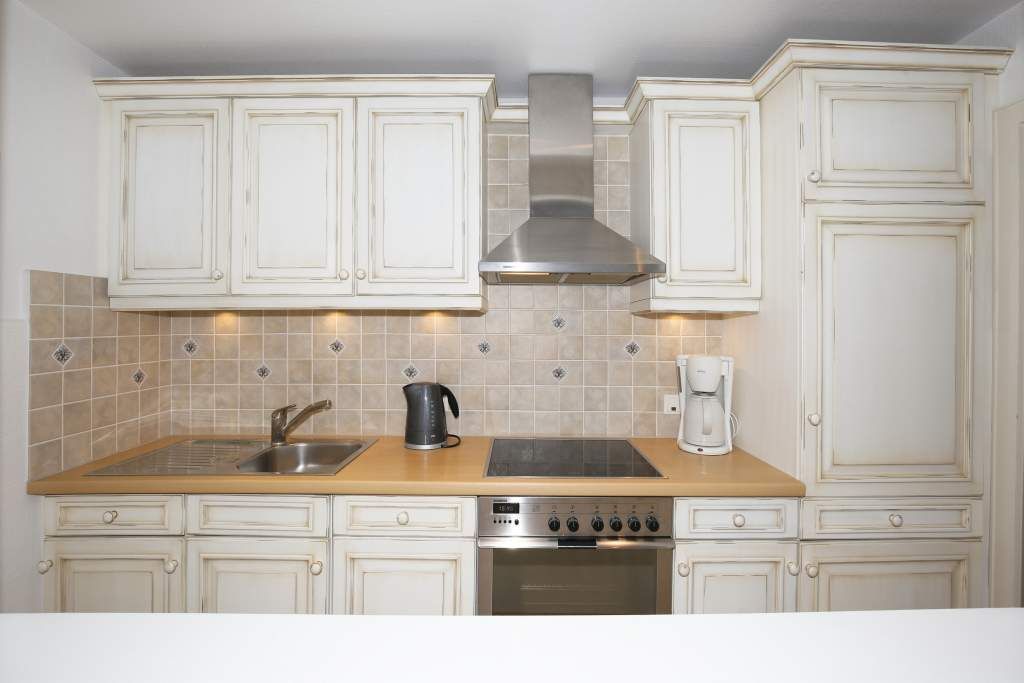 Die Küche hat einen Geschirrspüler, Cerankochfeld , Backofen und Kühlschrank mit 3*-Gefrierfach. Kaffeemaschine, Wasserkocher und Toaster gehören zu einer umfangreichen Grundausstattung.