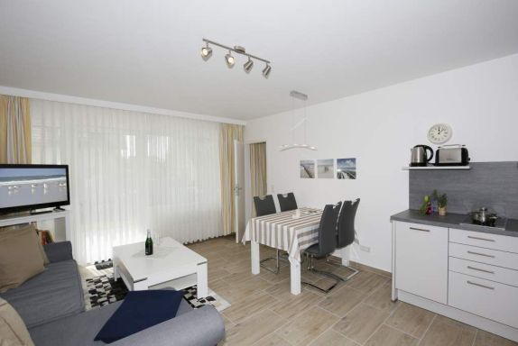 Super schicke 2-Zimmer-Nichtraucher-Ferienwohnung, ca. 45 qm, im EG mit Südterrasse (mit Balkonmöbeln und Auflagen) für 4 Personen.