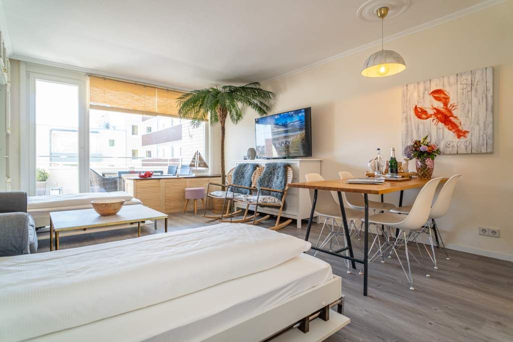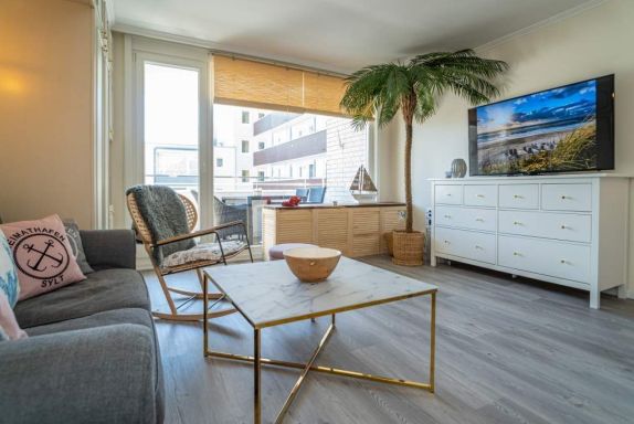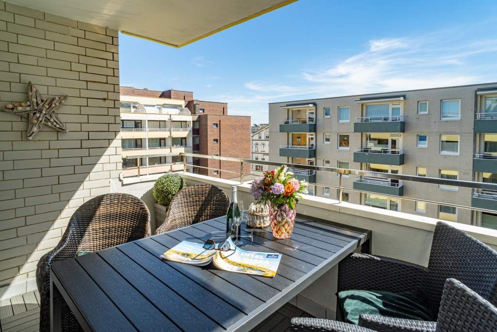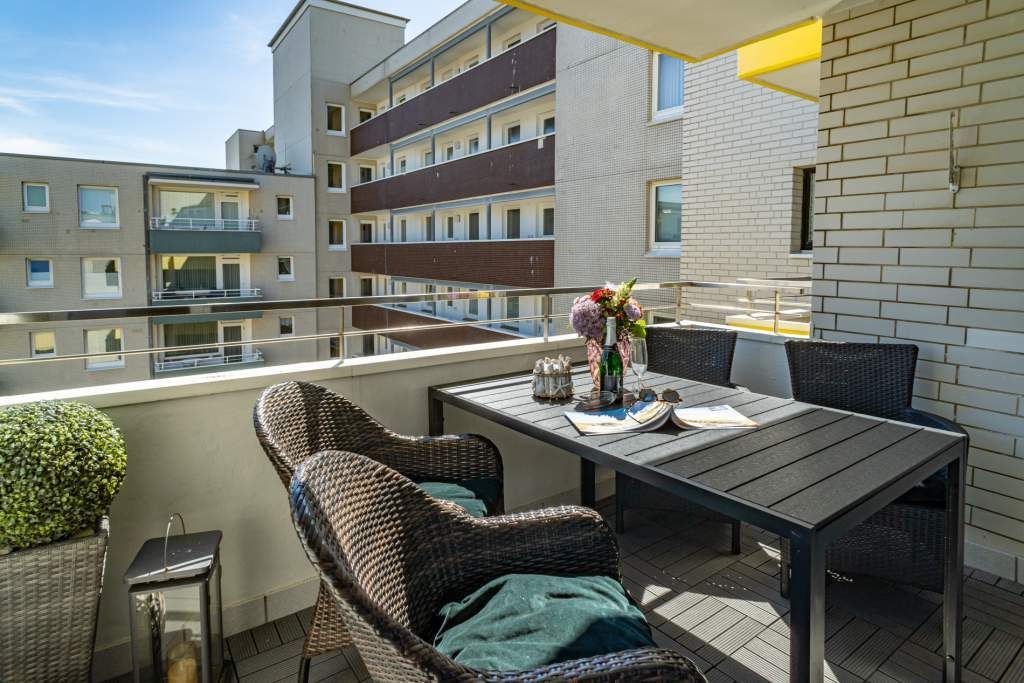 2-Zimmer-Ferienwohnung (ca.46 m²) in der 4. Etage zur Südseite mit Südbalkon (mit Balkonmöbeln und Auflagen) für max. 4 Personen.