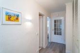 Vom Vorflur mit Garderobe gelangt man in die Diele mit Einbauschränken. Von hier sind das Wohnzimmer (mit Austritt zum Balkon) und offener Küche, das Schlafzimmer, die Schlafnische und das Duschbad/WC erreichbar.