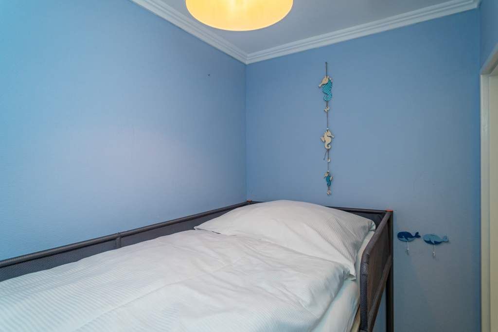 In der Schlafnische (mit Glasschiebetür von der Diele getrennt) befindet sich ein Etagenbett (je 0,90 m x 2,00 m).