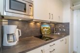 Die Küchenzeile hat einen Geschirrspüler, ein Cerankochfeld und einen Kühlschrank mit 3*-Gefrierfach.