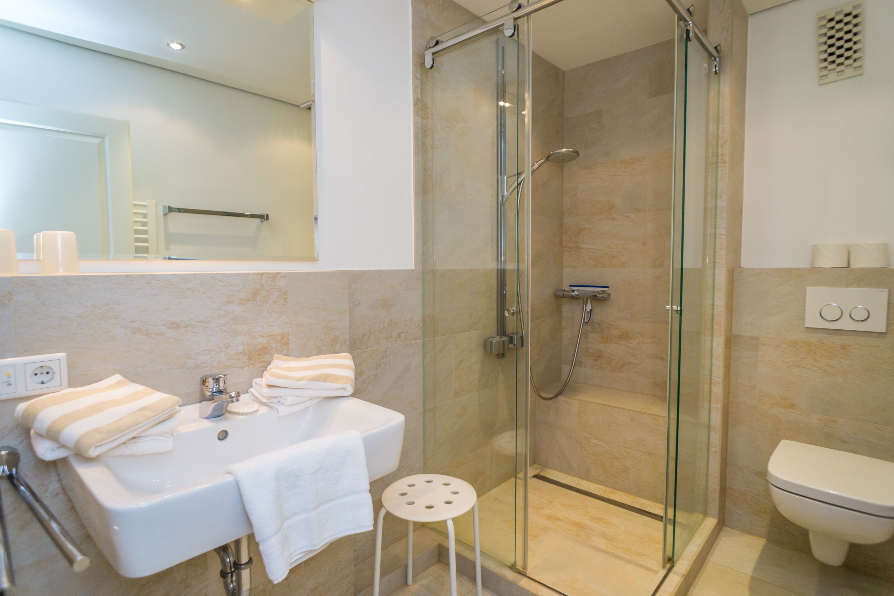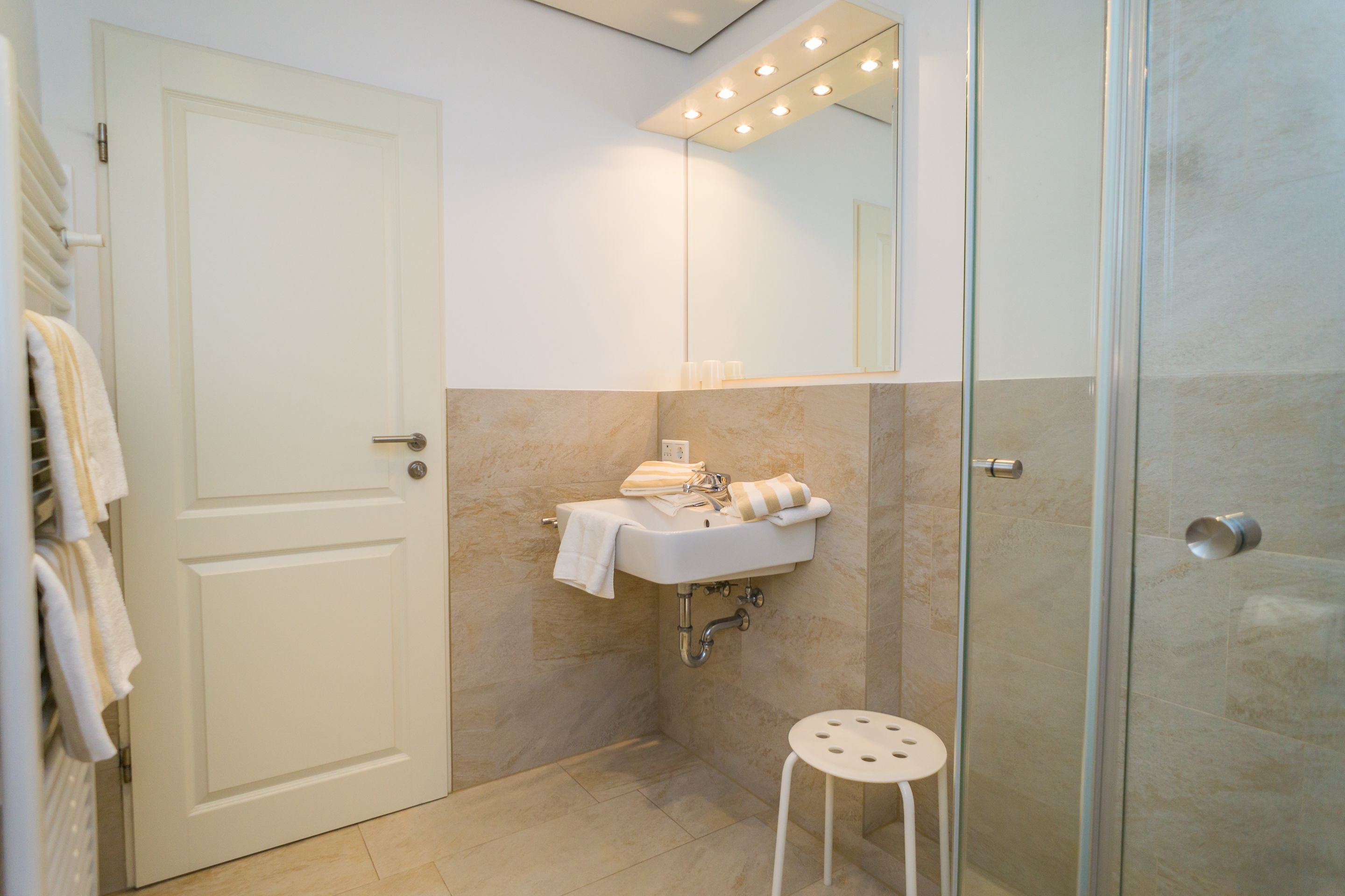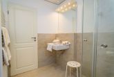 Im neuen Badezimmer befindet sich eine Dusche, ein WC und ein Waschtisch, ein Föhn ist vorhanden