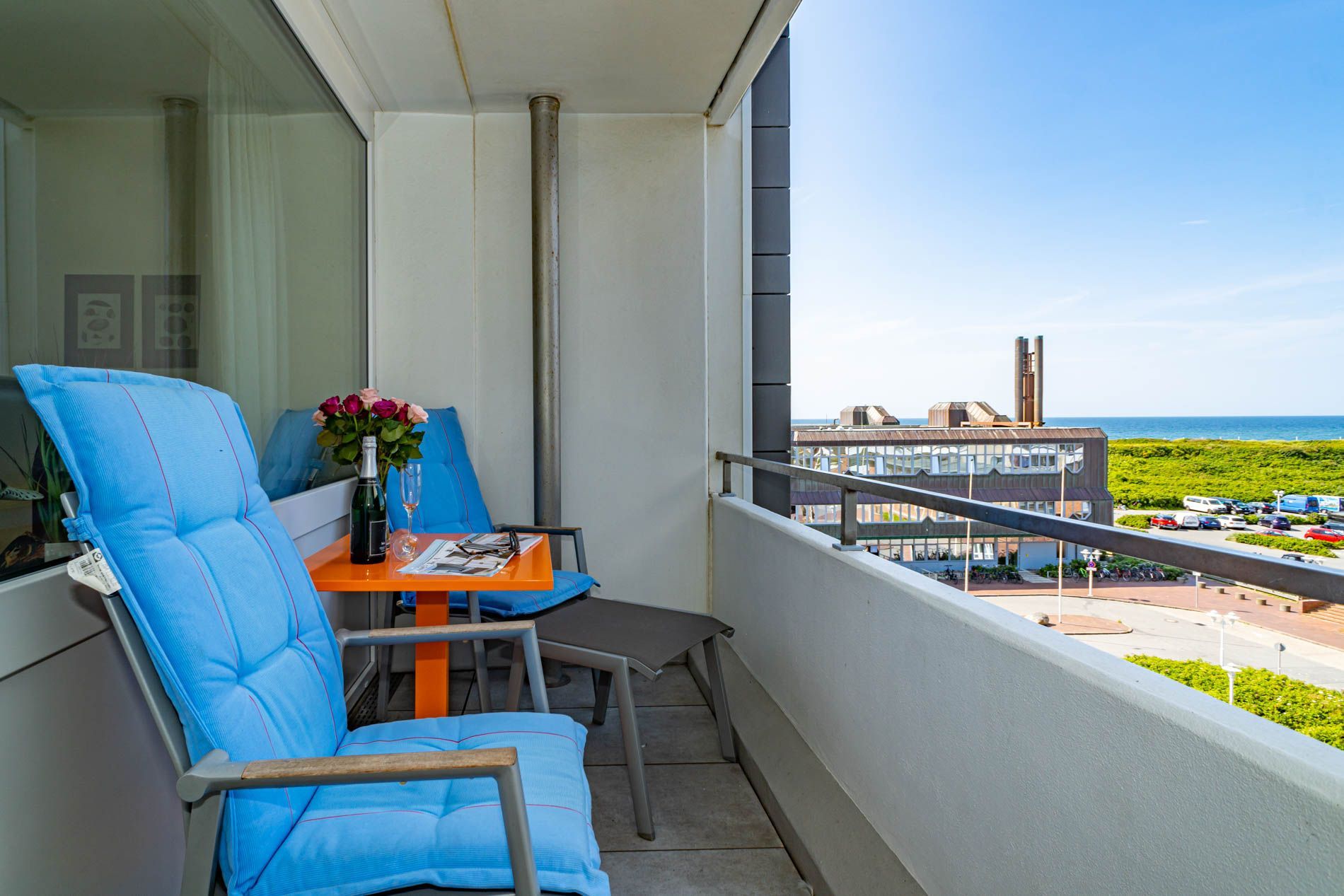 Geräumige, gemütliche 1-Zimmer-Nichtraucher-Ferienwohnung (ca. 40 qm) in der 4. Etage mit Nordloggia (mit Balkonmöbeln) für max. 2 Personen.