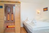Diese hier angebotene Wohnung verfügt neben einer Rain Dusche über eine Infrarotsauna (Vollspektrum Infrarotstrahler bis 60 Grad) für zwei Personen.
