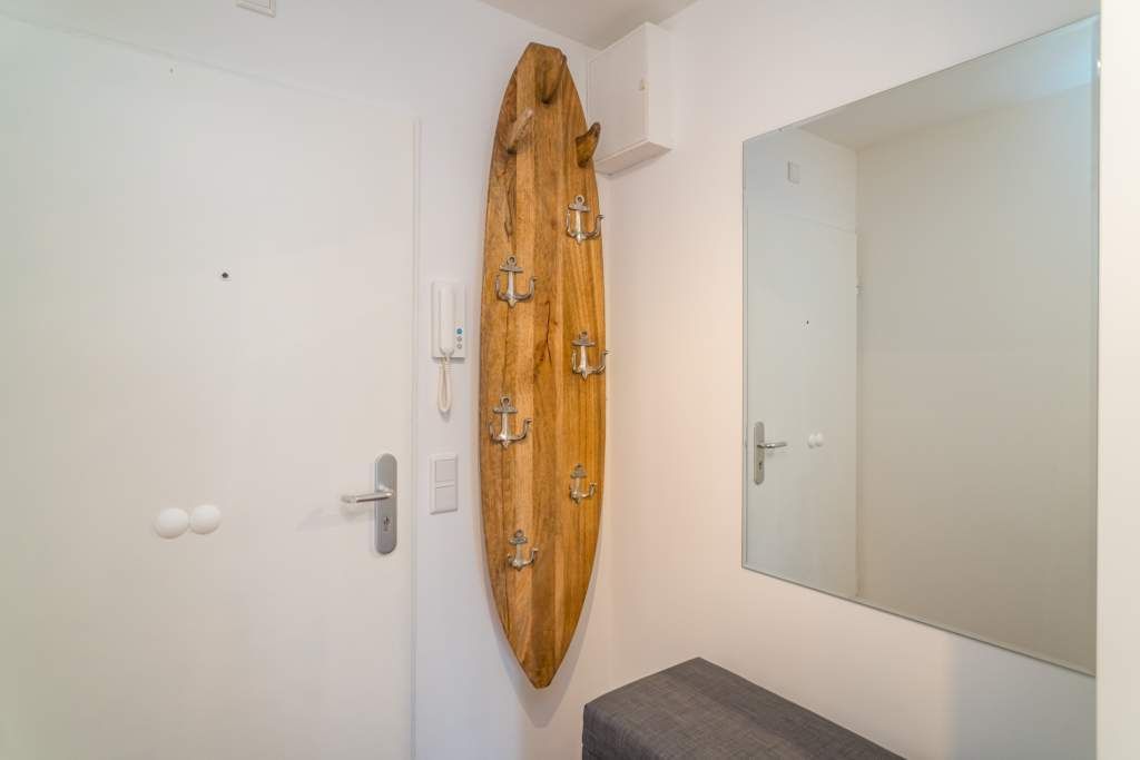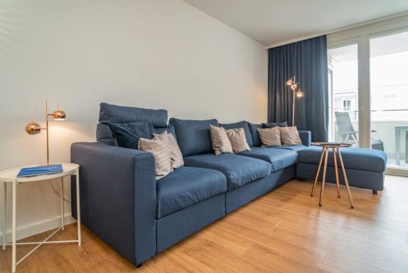Weiterhin verfügt sie über einen geschützten Südbalkon (mit Balkonmöbeln und Auflagen) mit Blick auf die Strandstraße.