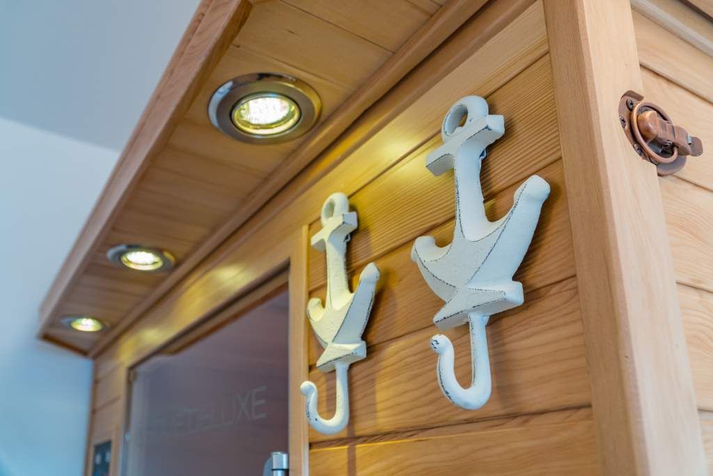 Diese hier angebotene Wohnung verfügt neben einer „Rain“ Dusche über eine Infrarotsauna (Vollspektrum Infrarotstrahler bis 60 Grad) für zwei Personen.