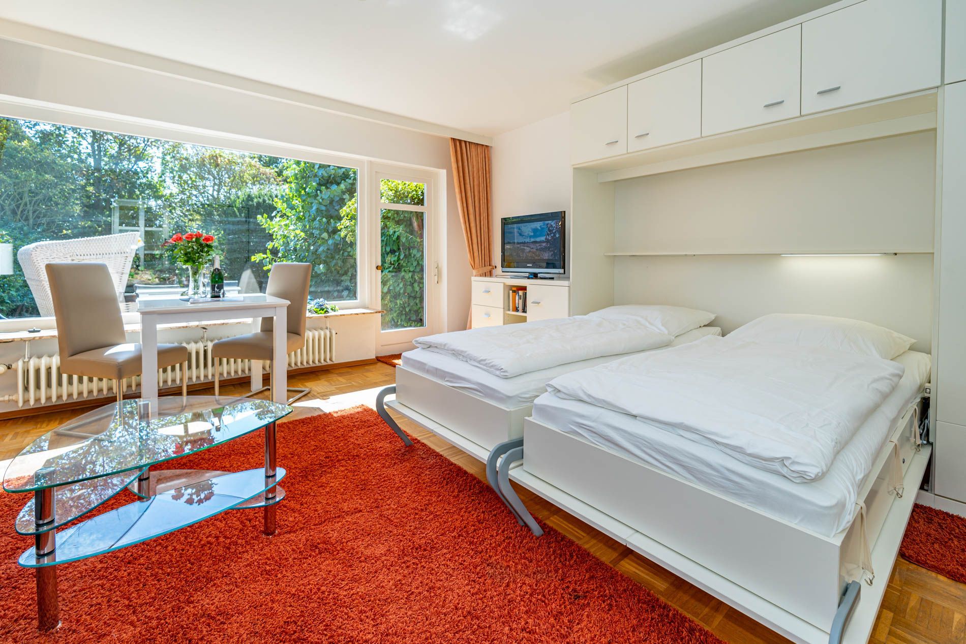 Diese großzügig geschnittene, renovierte 1-Zimmer-Nichtraucherwohnung (ca. 40 m²) befindet sich im Erdgeschoss eines gepflegten Hauses in angenehm ruhiger Wohnlage ideal für erholsame Urlaubstage zu zweit. Die charmante Ferienwohnung überzeugt mit einem durchdachten Grundriss, hochwertiger Ausstattung und einem sonnigen Außenbereich.
