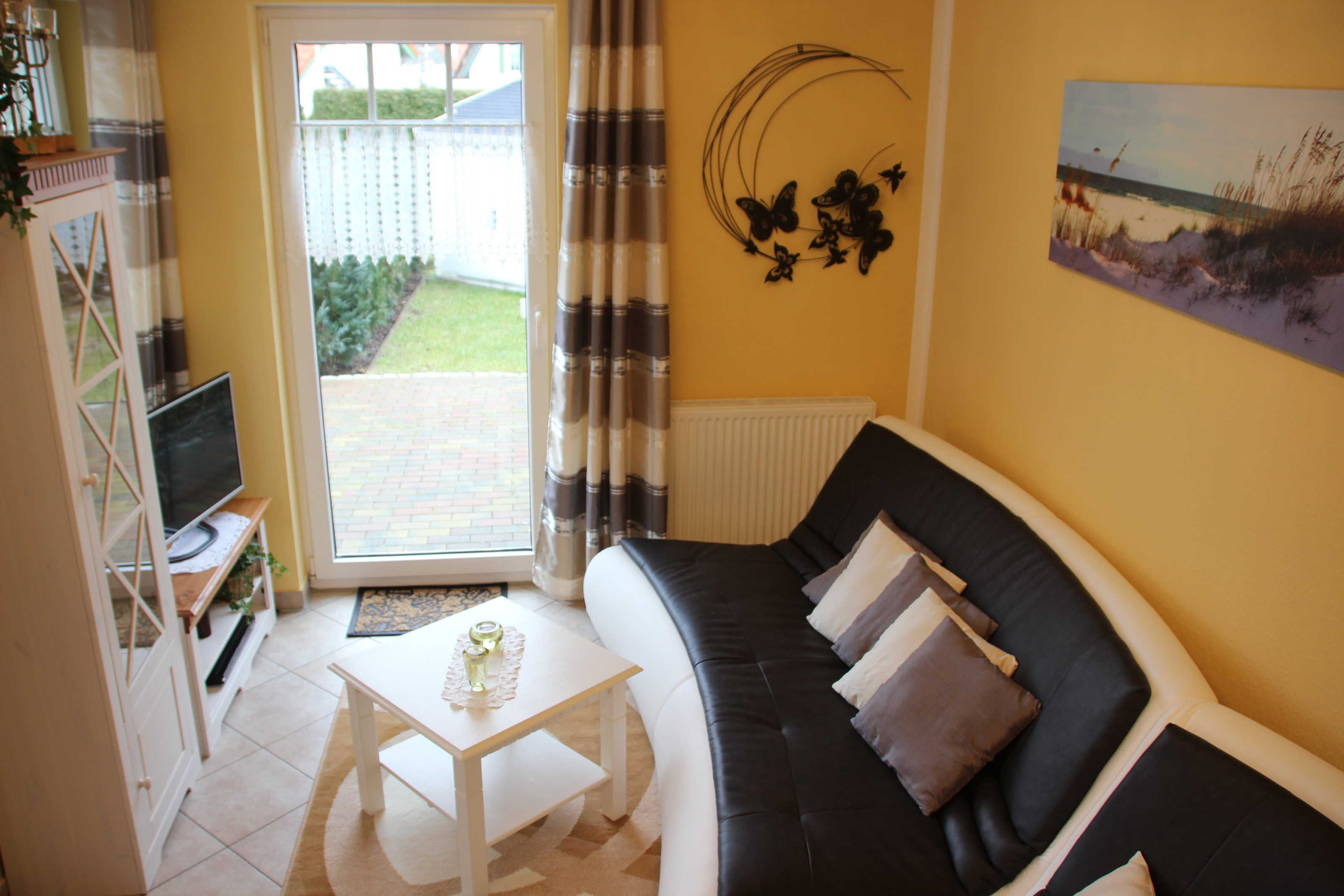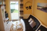 Wohnzimmer Das Wohnzimmer befindet sich im Erdgeschoß, von welchem aus Sie direkt auf die Terrasse und in den Garten gelangen. Es ist mit einer gemütlichen Polster- Sitzecke eingerichtet, wo sie gemütliche Abende verbringen können. Zur weiteren Ausstattung gehören u.a. Sat-TV, DVD-Player und Radio (Radio, CD, Kassette).