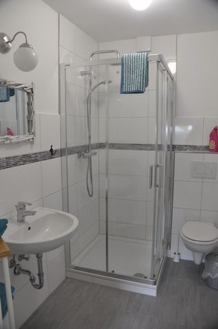 Eine eigene Küchenzeile und eigenes Badezimmer mit Dusche