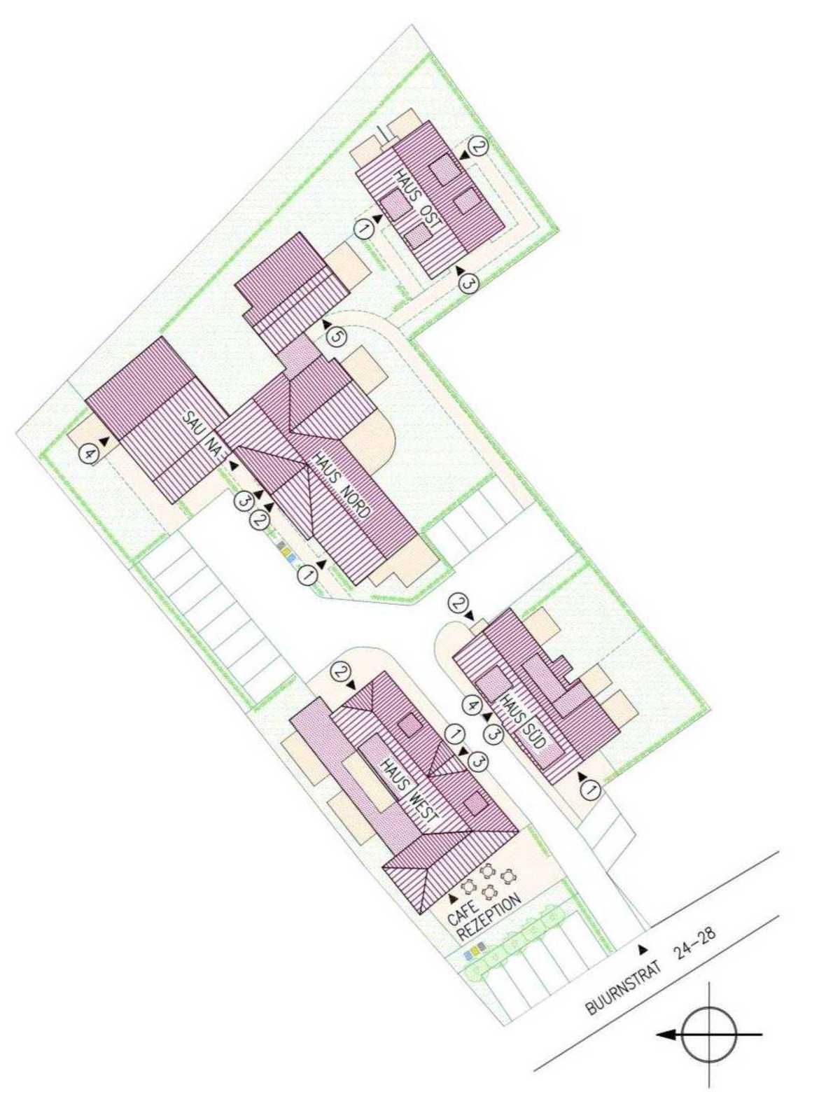 Zur Gesamtanlage gehört ein großer gemeinschaftlicher Saunabereich, ein Teich mit Strandkörben und Outdoor-Fitnessgeräten. Auch eine E-Tankstelle befindet sich seit Frühjahr 2022 auf unserem Gästeparkplatz (gegen Gebühr).
