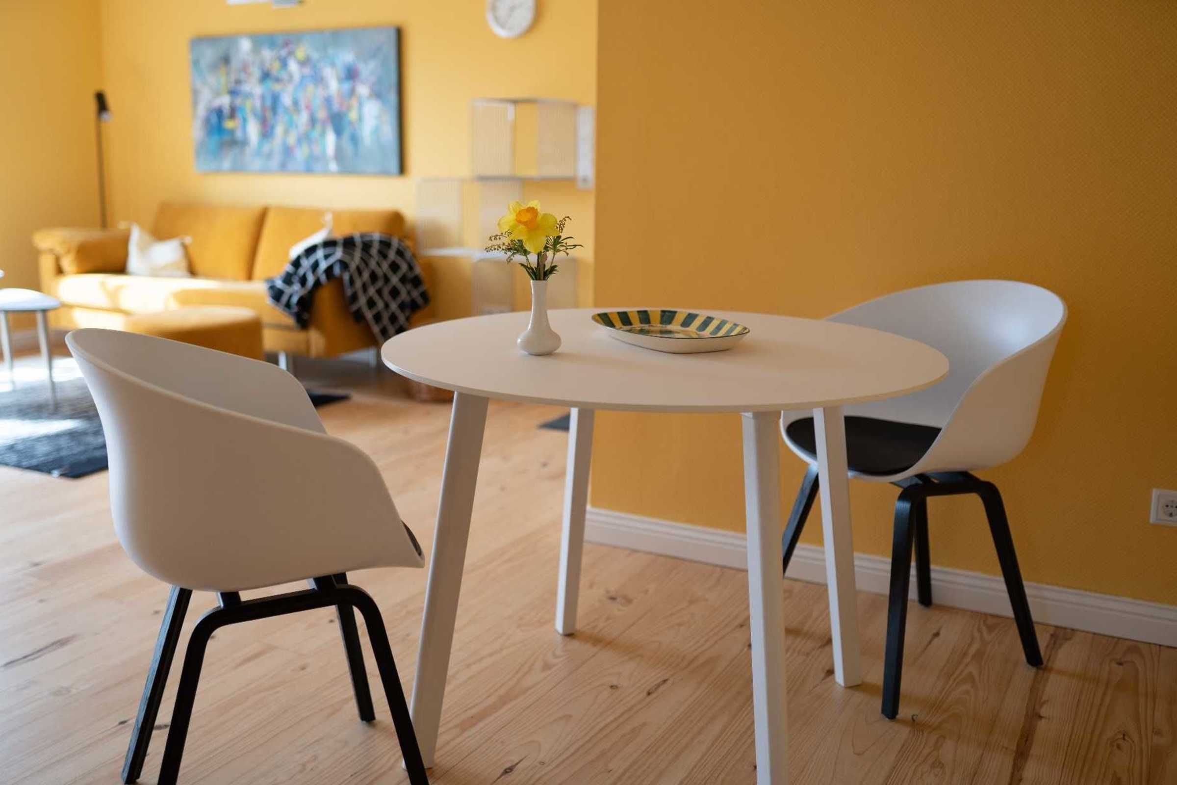Die Ferienwohnungen sind im skandinavischen Design individuell eingerichtet und bestechen durch ihre ruhige Lage mitten im Grünen.