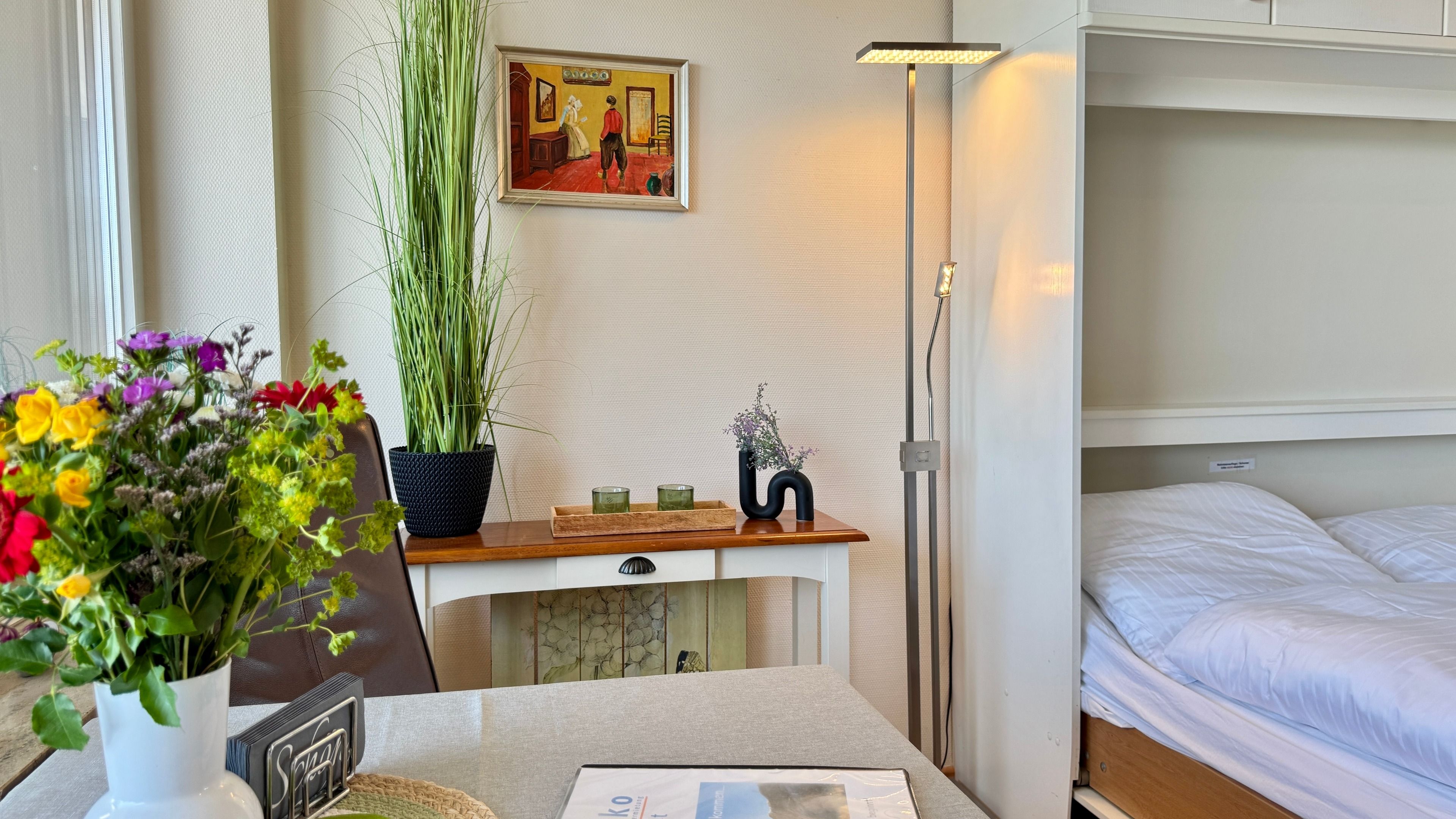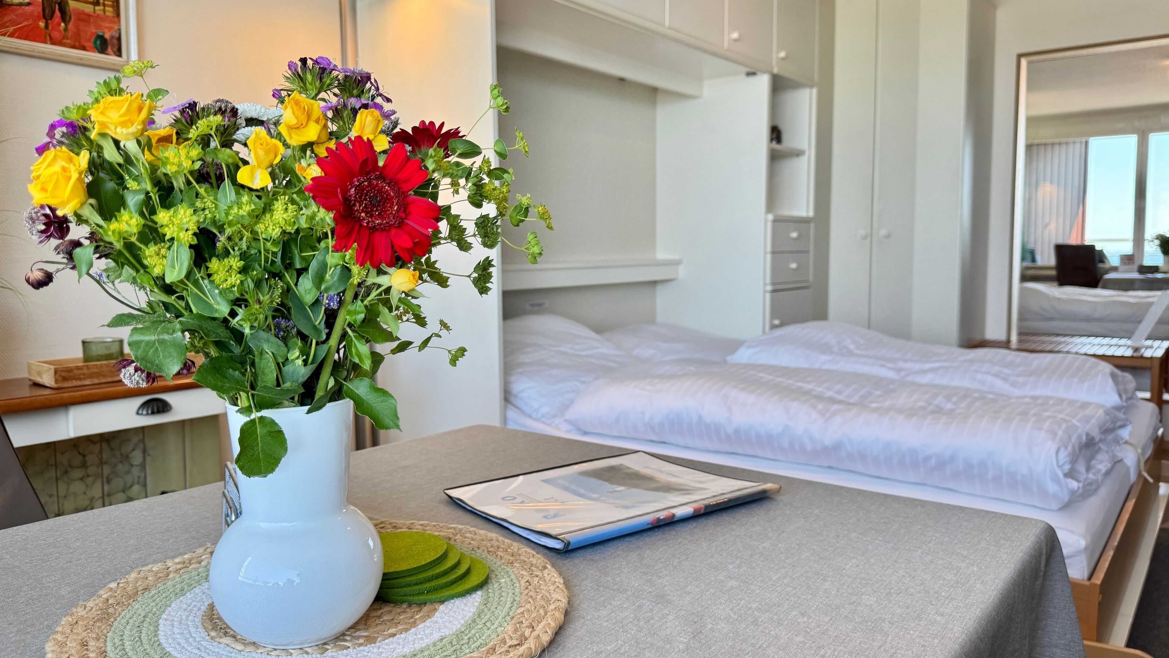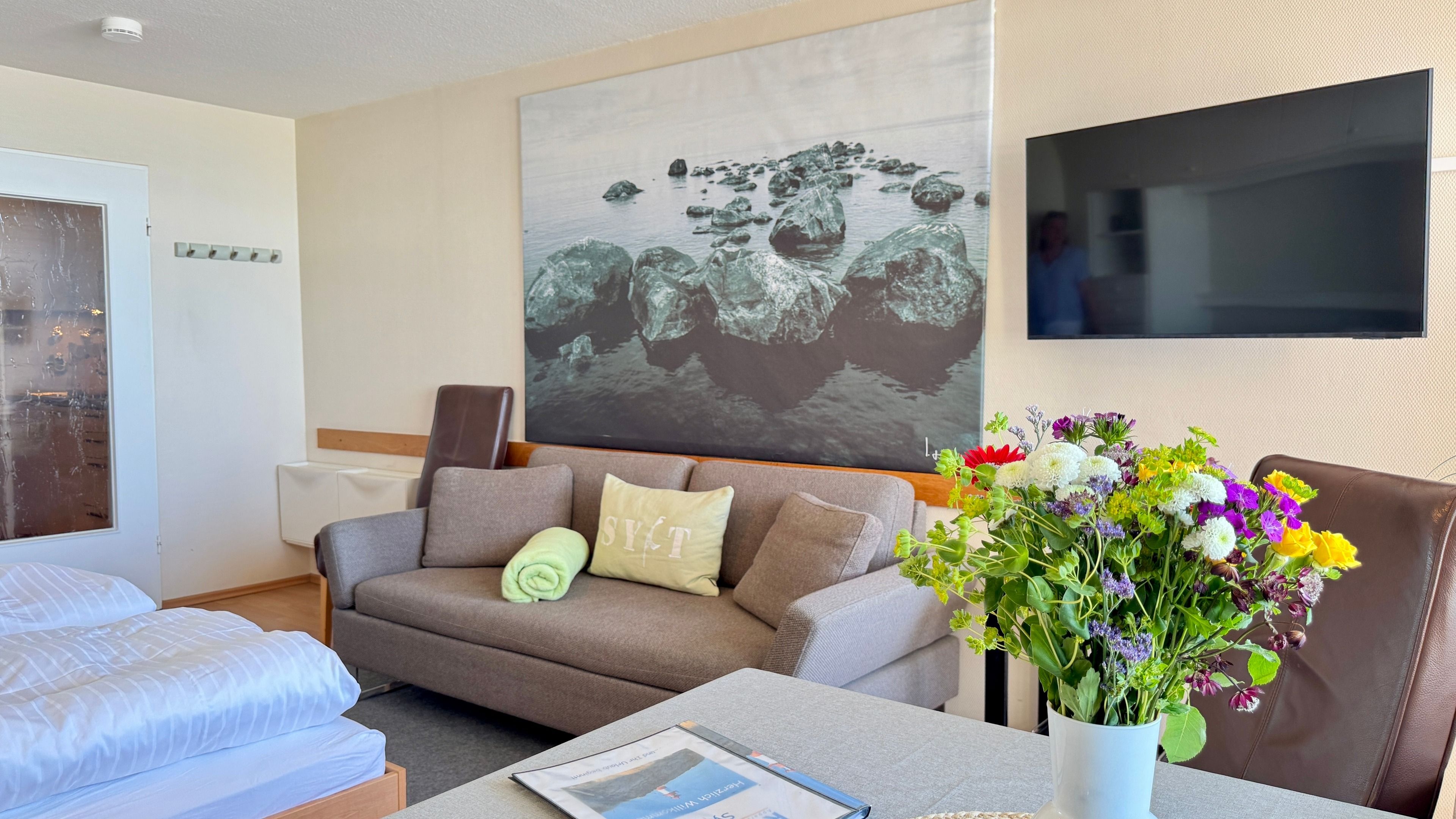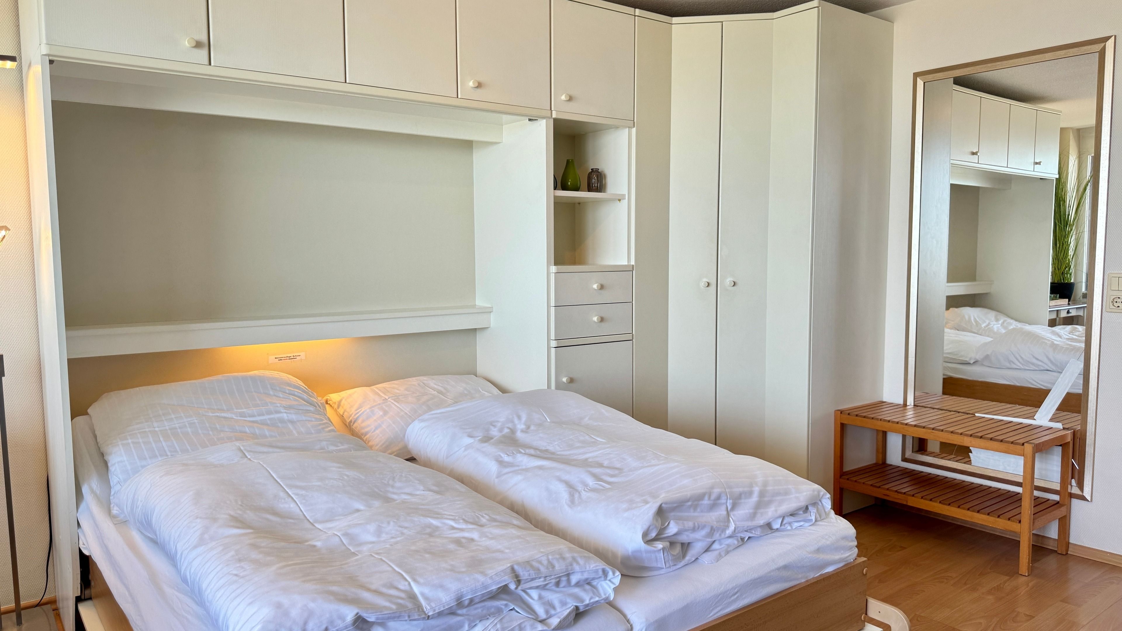 Dieses helle, gut ausgestattete 1-Zi.-Appartement befindet sich in der 3. Etage des Hauses Haus am Meer und hat ca. 34 m² Wohnfläche. Vom Westbalkon hat man einen traumhaften Seeblick. Eine gut ausgestattete Küche und ein modernes Bad runden das Bild ab