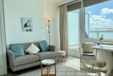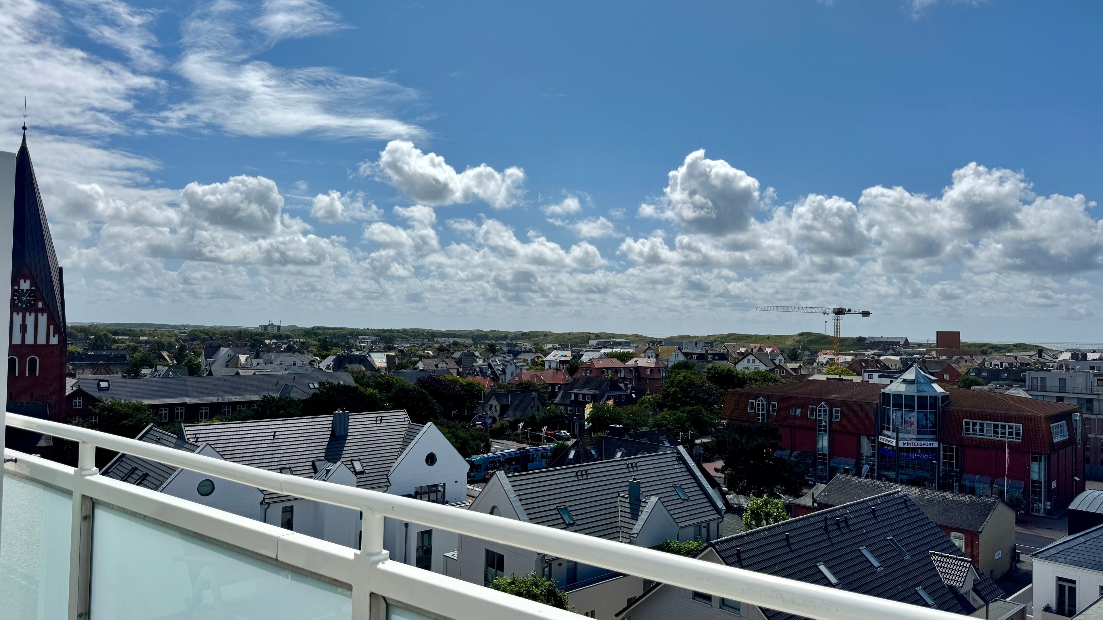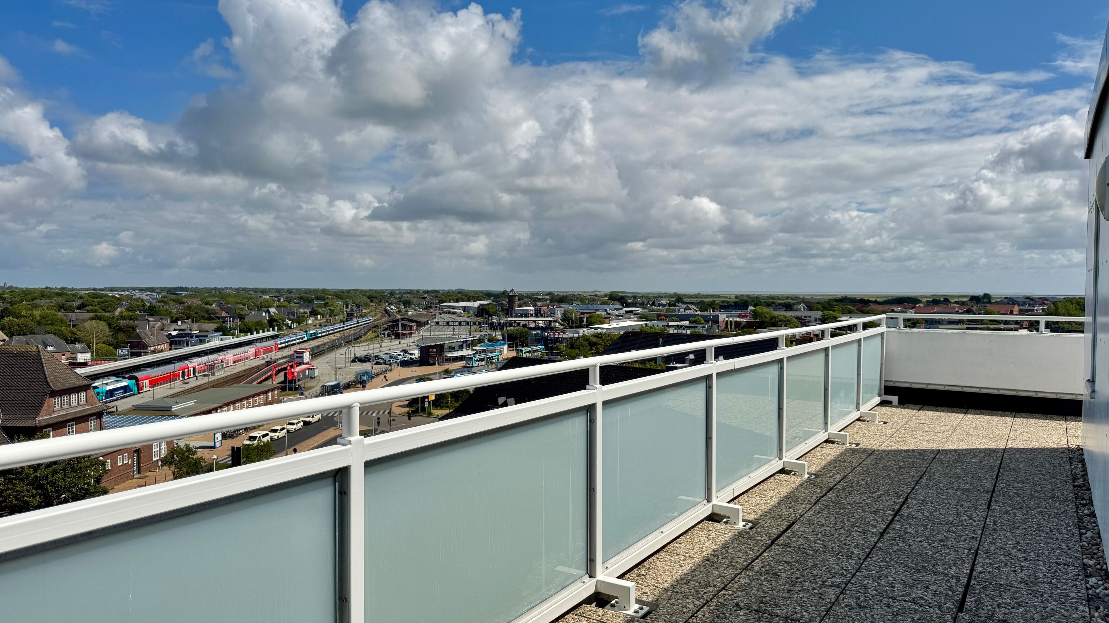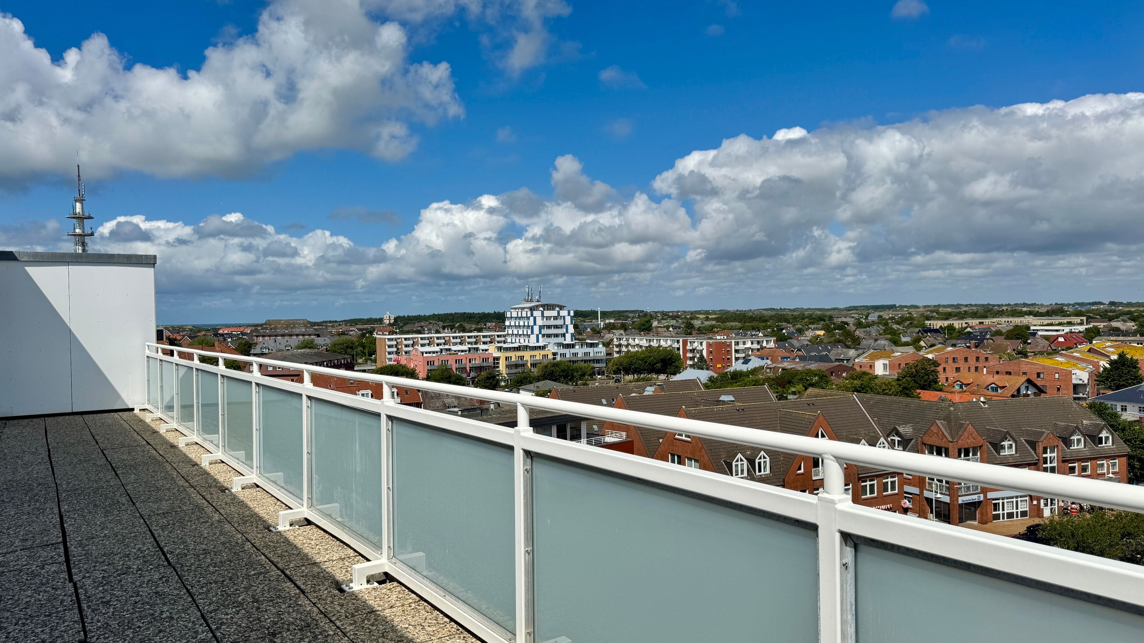 Das Penthouse-Appartement liegt nur etwa 8-10 Gehminuten vom Westerländer Hauptstrand entfernt, hat einen großzügigen Wohn-/Schlafraum und einen Balkon mit einem gigantischem Blick über die Stadt bis zum Meer.