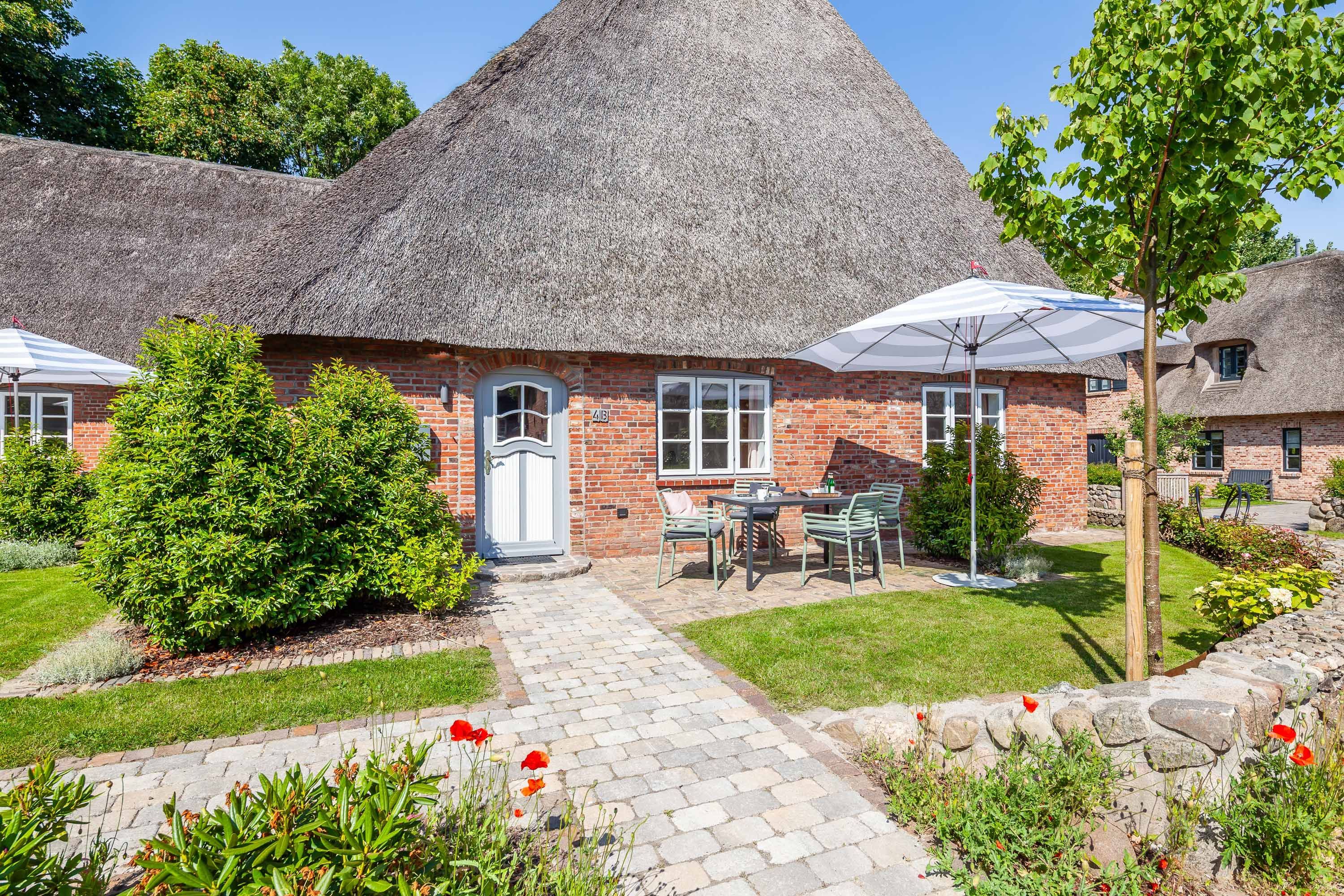 Urlaub unter Reet genießen Sie ihre Auszeit in unserem Hus Strungud in idyllischer Lage im Dorfkern von Alkersum. Das historische Friesenhaus wurde bereits Anfang des 18. Jahrhunderts errichtet und zählt damit inselweit zu den ältesten Zeitzeugen.