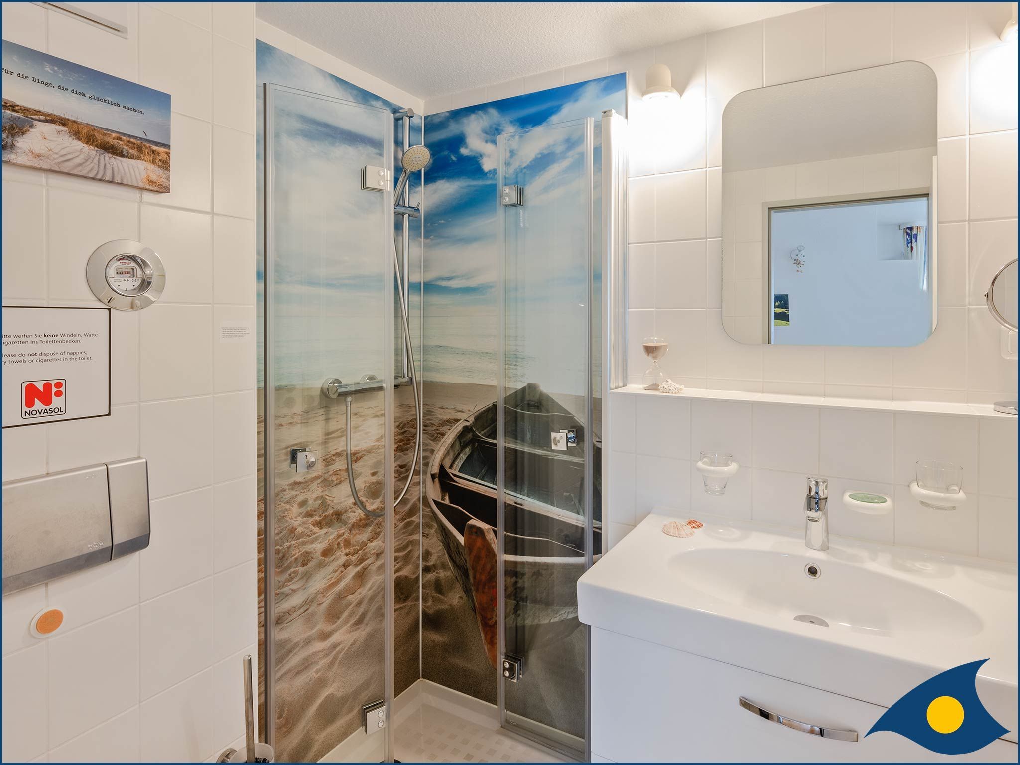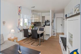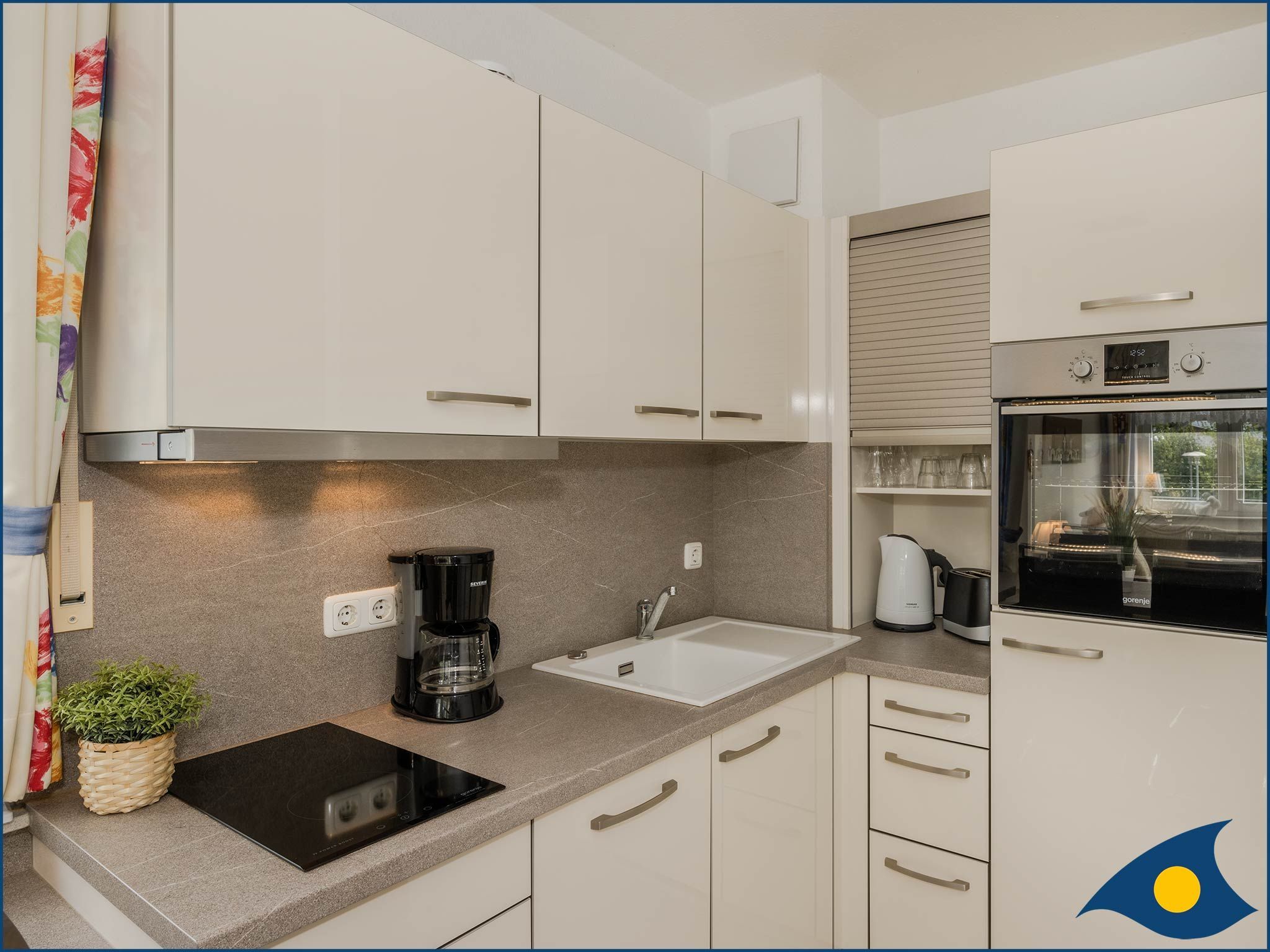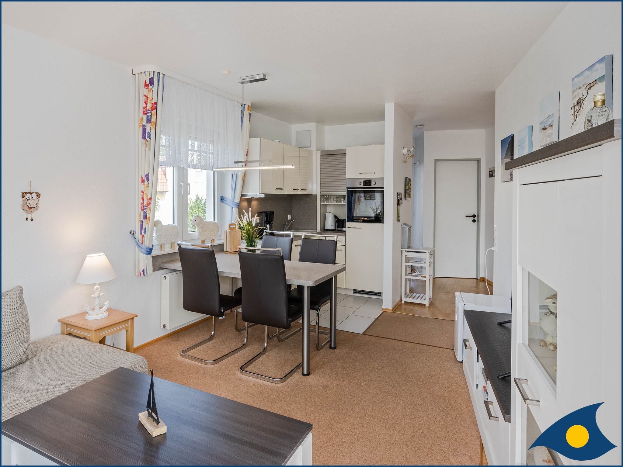 In der Wohnung befindet sich ein großzügiges Wohn-/Esszimmer mit offener, voll ausgestatteter Küche (Backofen, Mikrowelle, Geschirrspülmaschine). Von hieraus gelangen Sie auf den Balkon, auf dem Sie die Urlaubstage entspannt ausklingen lassen können. Die Wohnung verfügt über ein Badzimmer mit Dusche.