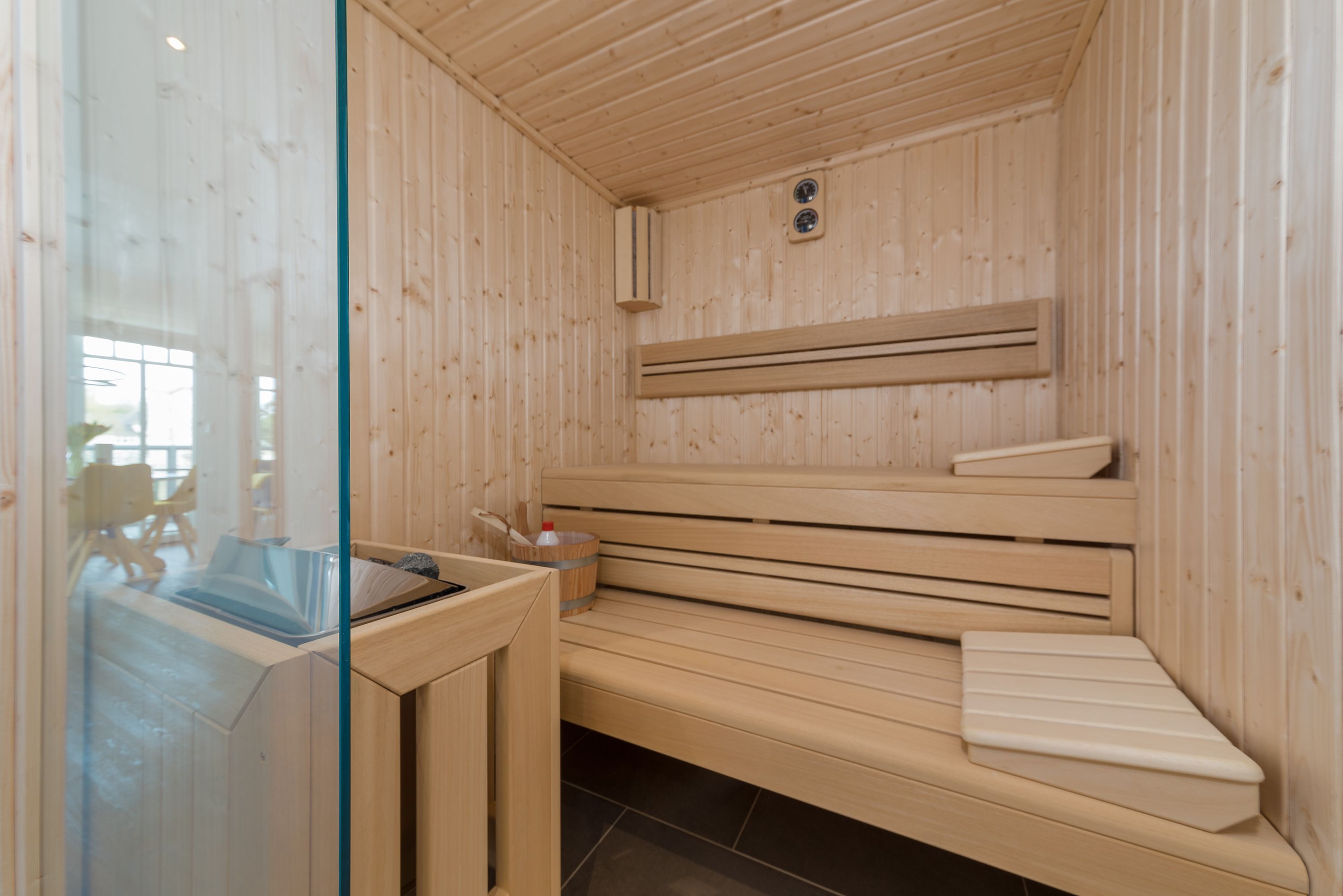 • Eine geräumige Panoramasauna für entspannende Momente, besonders nach einem langen Spaziergang am Strand.