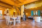 offener Ess- und Wohnbereich, gemütliche Sitzecke, Kamin, Flachbildfernseher
