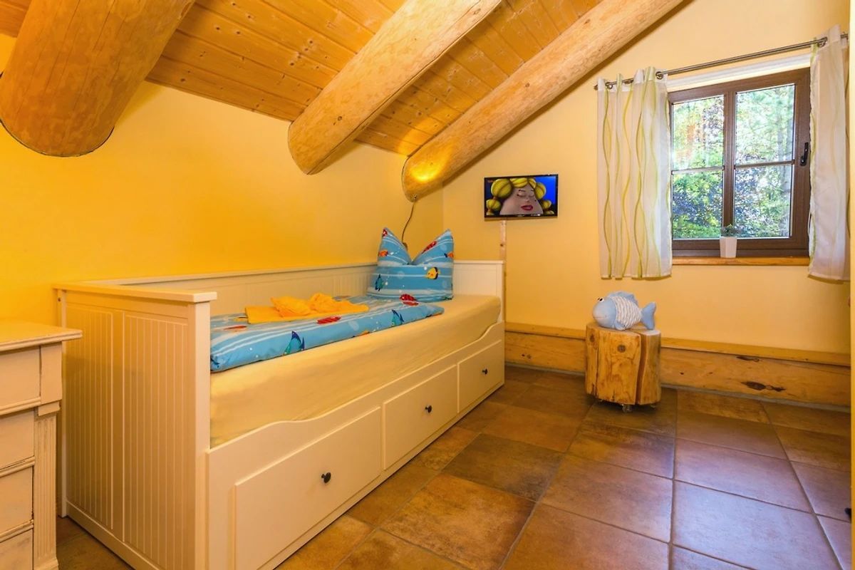 1 Schlafzimmer zwei Einzelbetten, wovon man eins problemlos zum Doppelbett ausziehen kann, TV