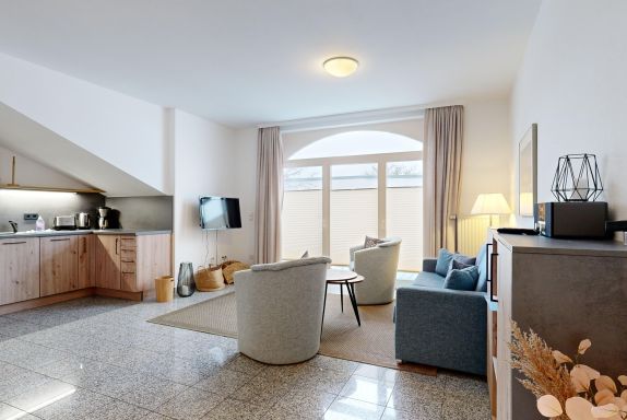 Komfort-Ferienwohnung a cappella 05 für bis zu 4 Personen (3 Zimmer / 70m²) im 2. Obgergeschoss des Appartementhauses mit Balkon, 2 Schlafzimmer, Fußbodenheizung