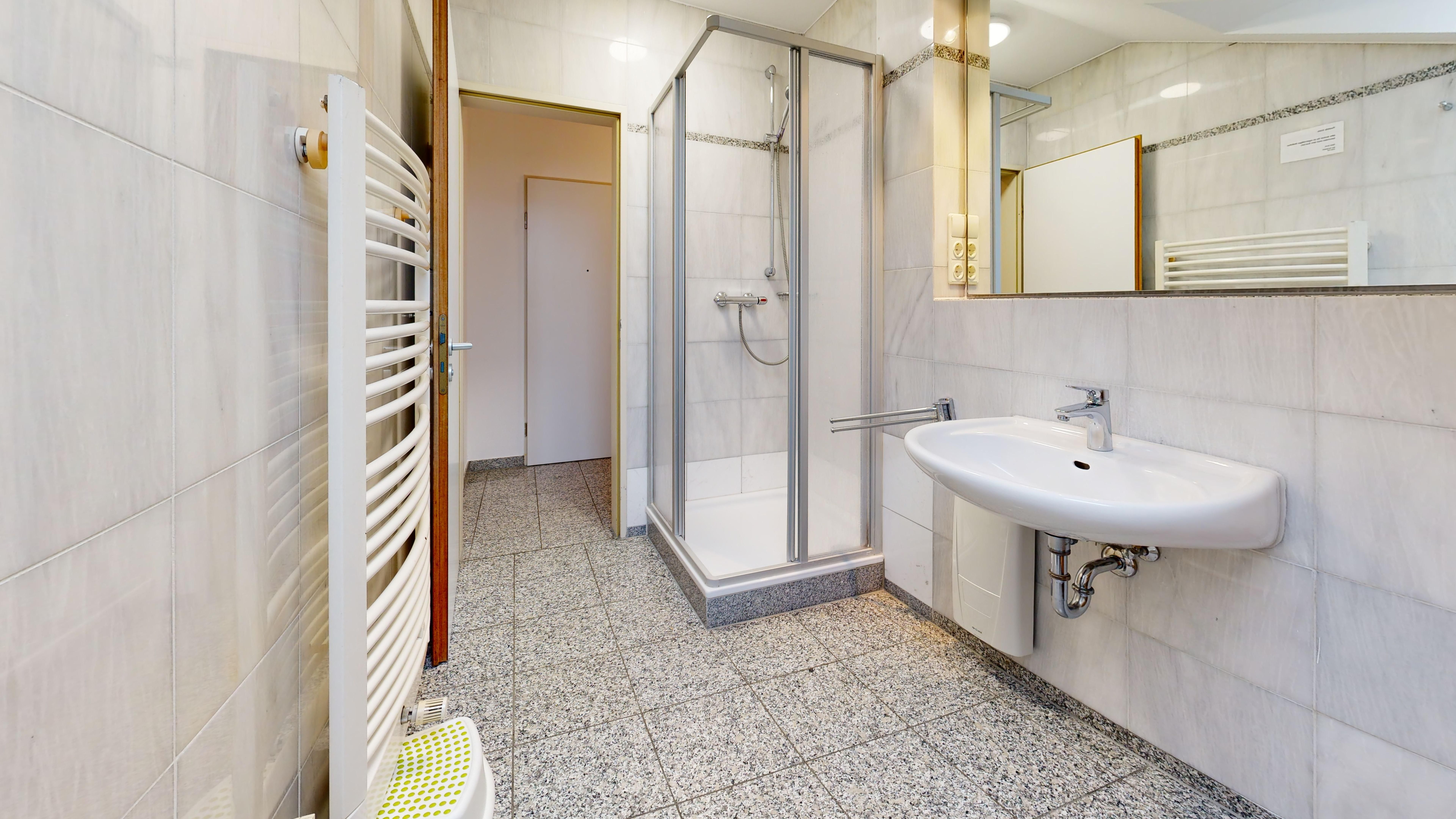 1 Badezimmer mit Dusche, WC und Föhn