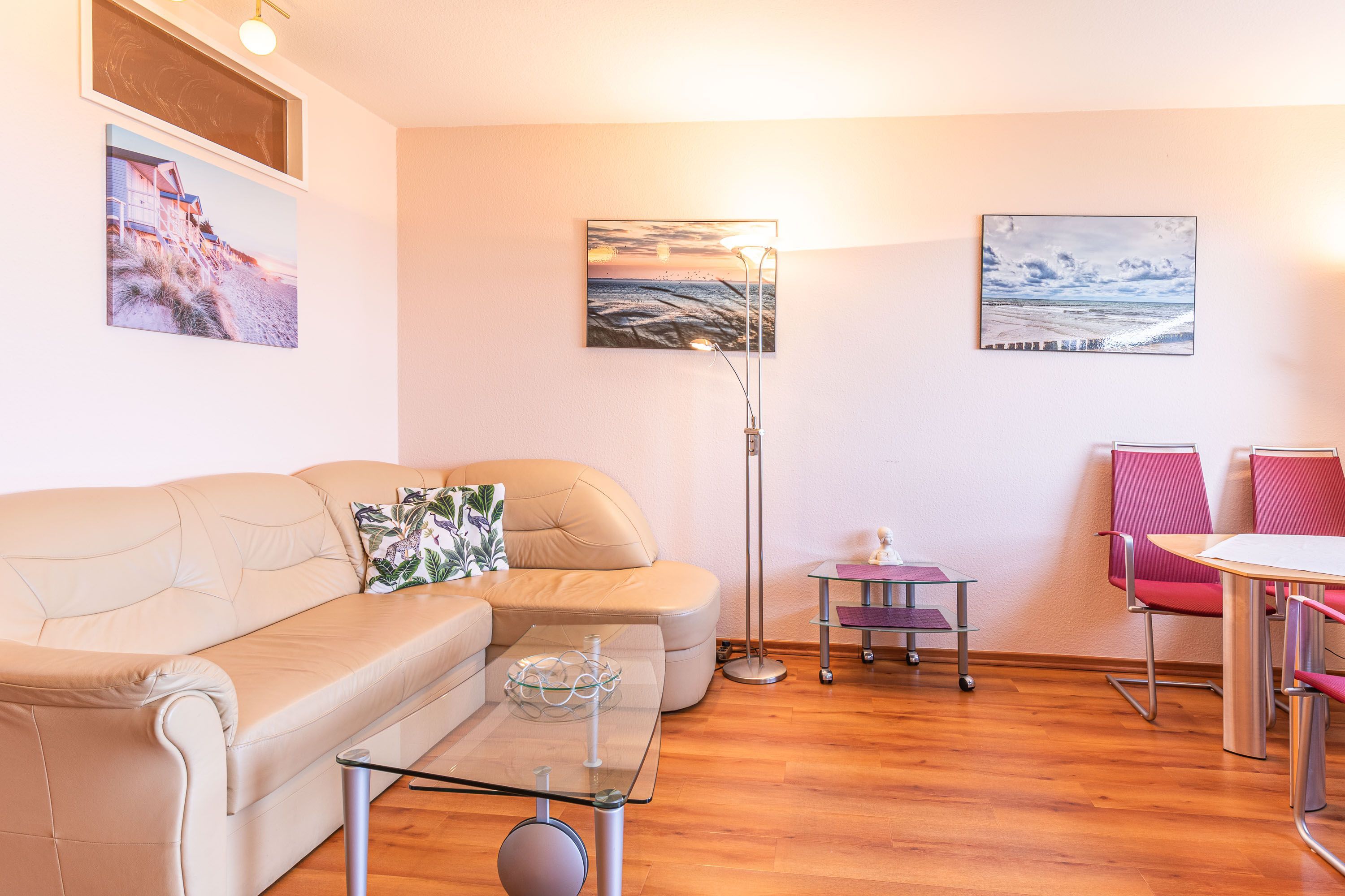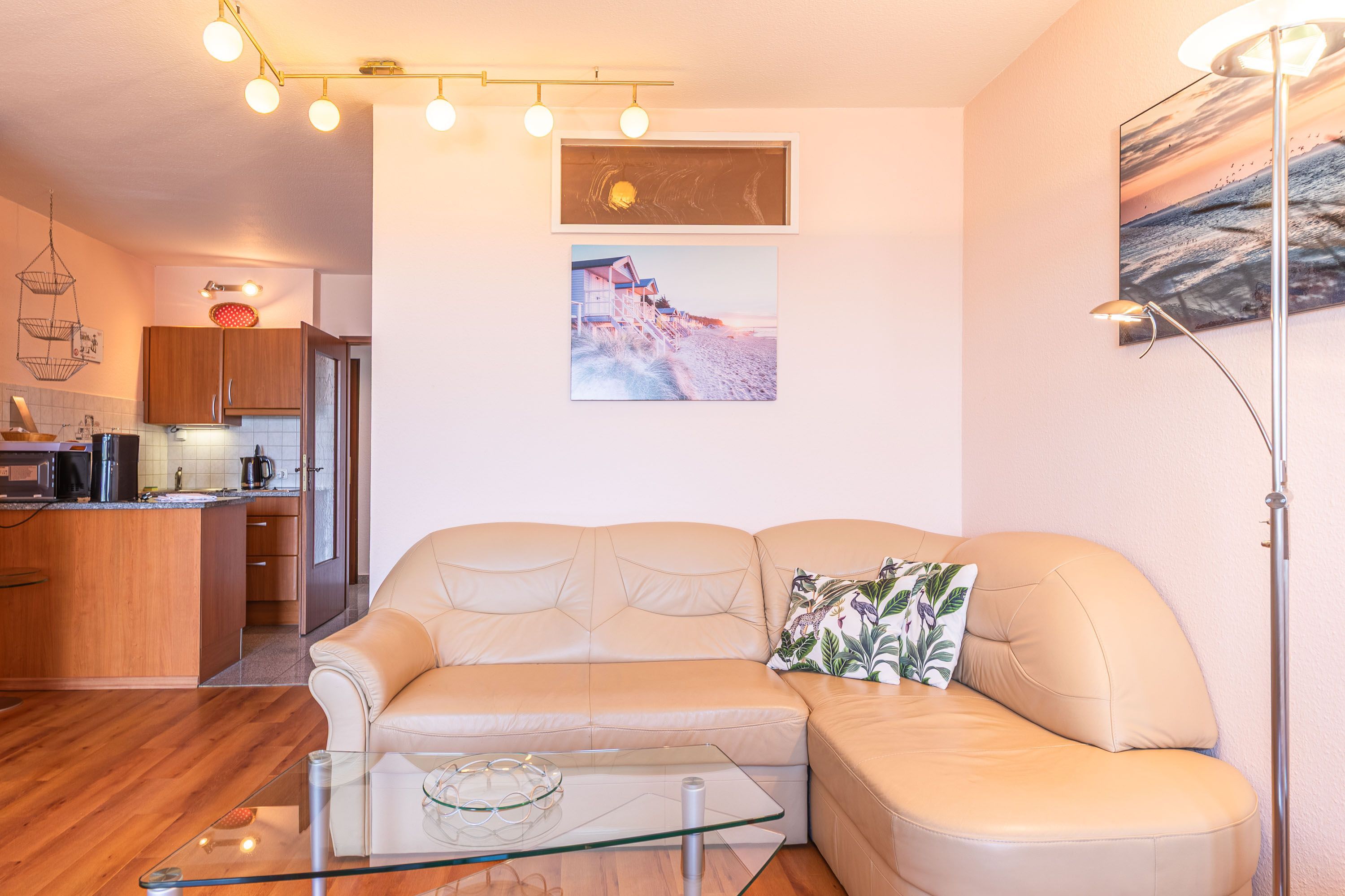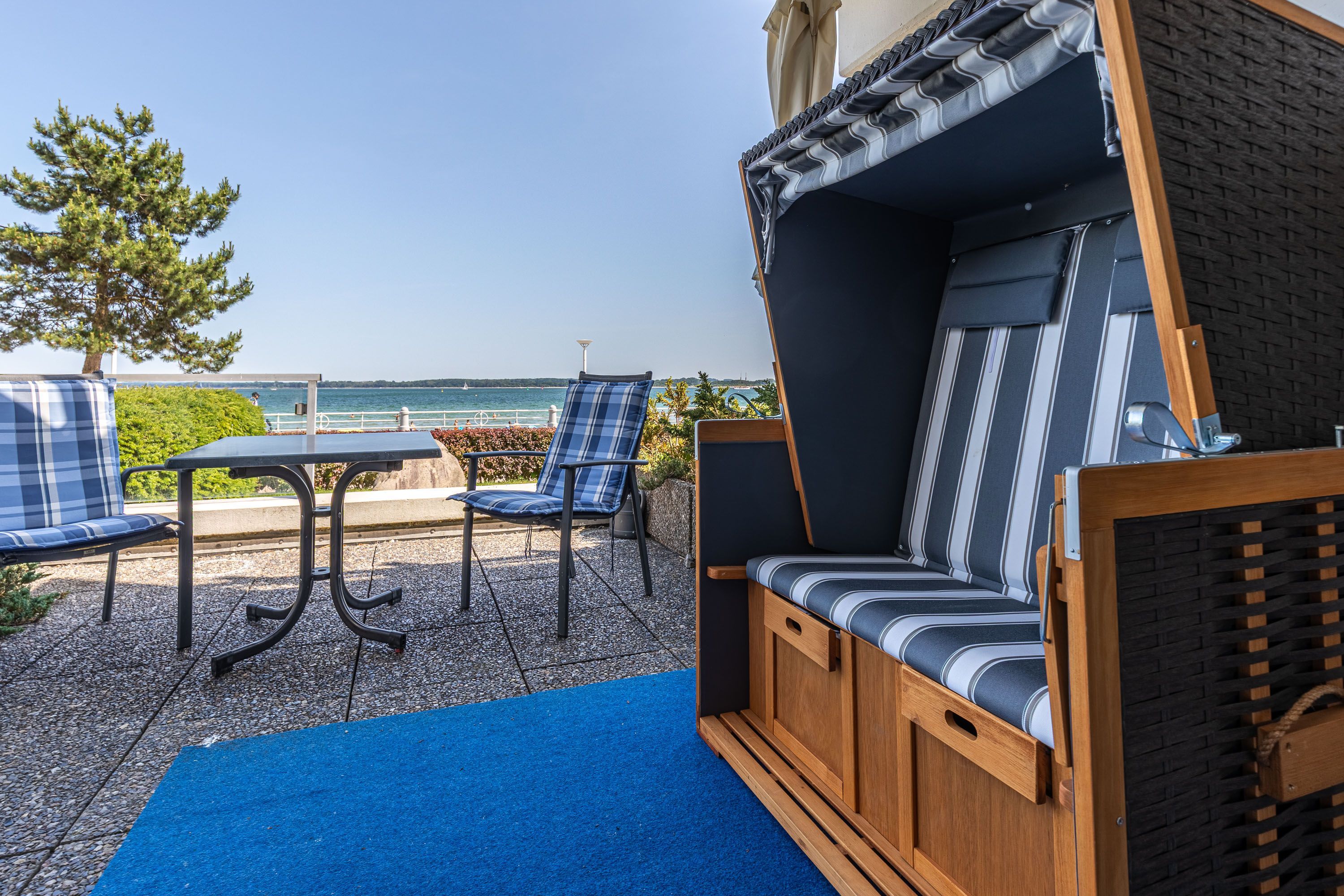 Terrasse mit Strandkorb, Küche, Duschbad/WC, Fön, TV, inkl. Tiefgaragenstellplatz direkt im Haus.