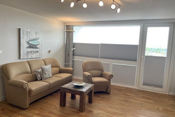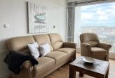 befindet sich die hochwertig eingerichtete Ferienwohnung für 1-2 Personen (ca. 42 m²). Die Ferienwohnung Eastview hat, auf Grund ihrer Höhe in der 8. Etage, einen fantastischen Ausblick über die Stadt bis hin zum Wattenmeer.