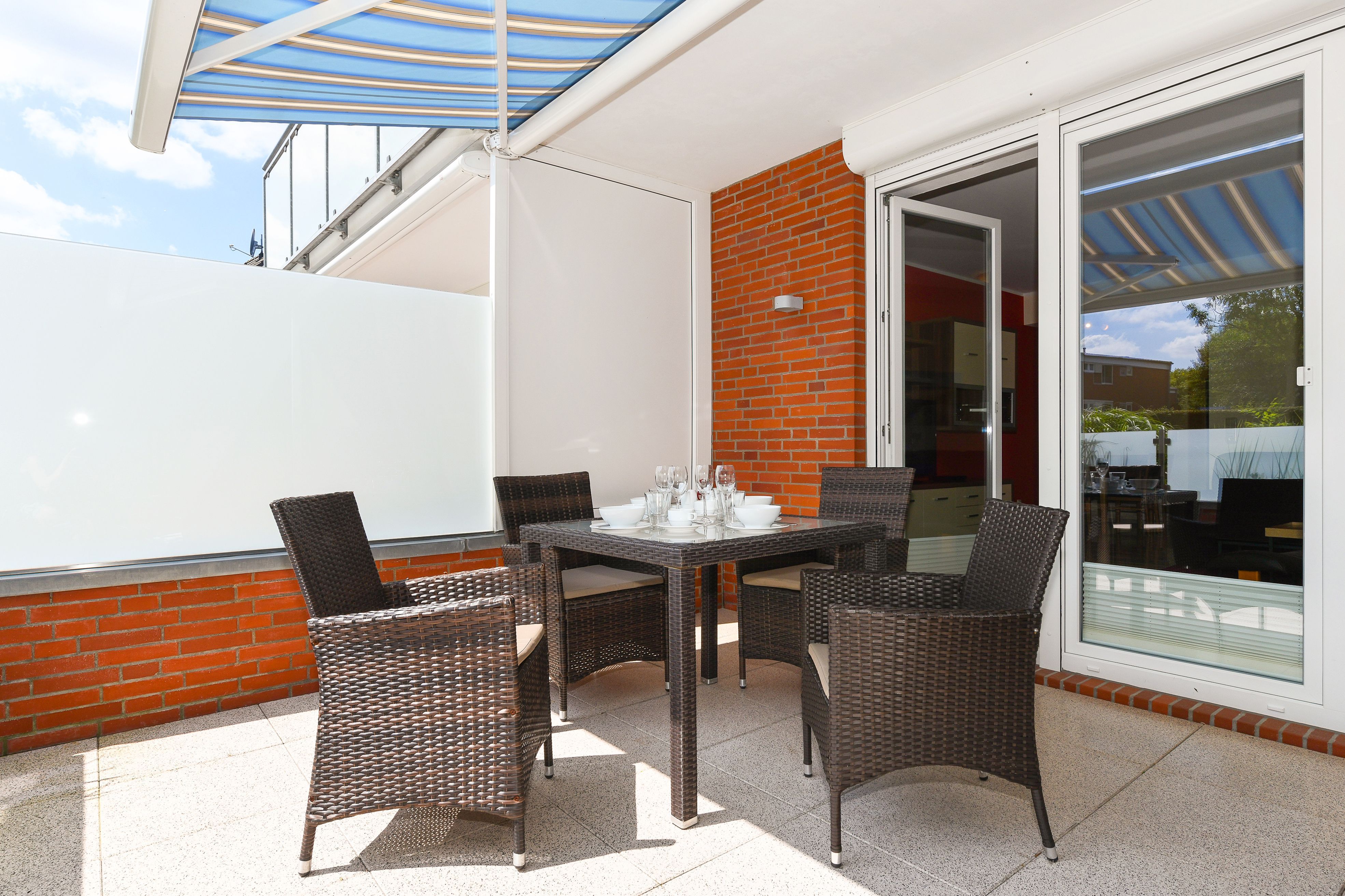 Größe ca. 80 Quadratmeter, Wohnzimmer, Küche, Schlafzimmer, zweites separates Schlafzimmer/Kinderzimmer, Badezimmer mit Dusche, Waschtisch und WC, Erdgeschoss, Terrasse, optimal für 1 bis 4 Personen.