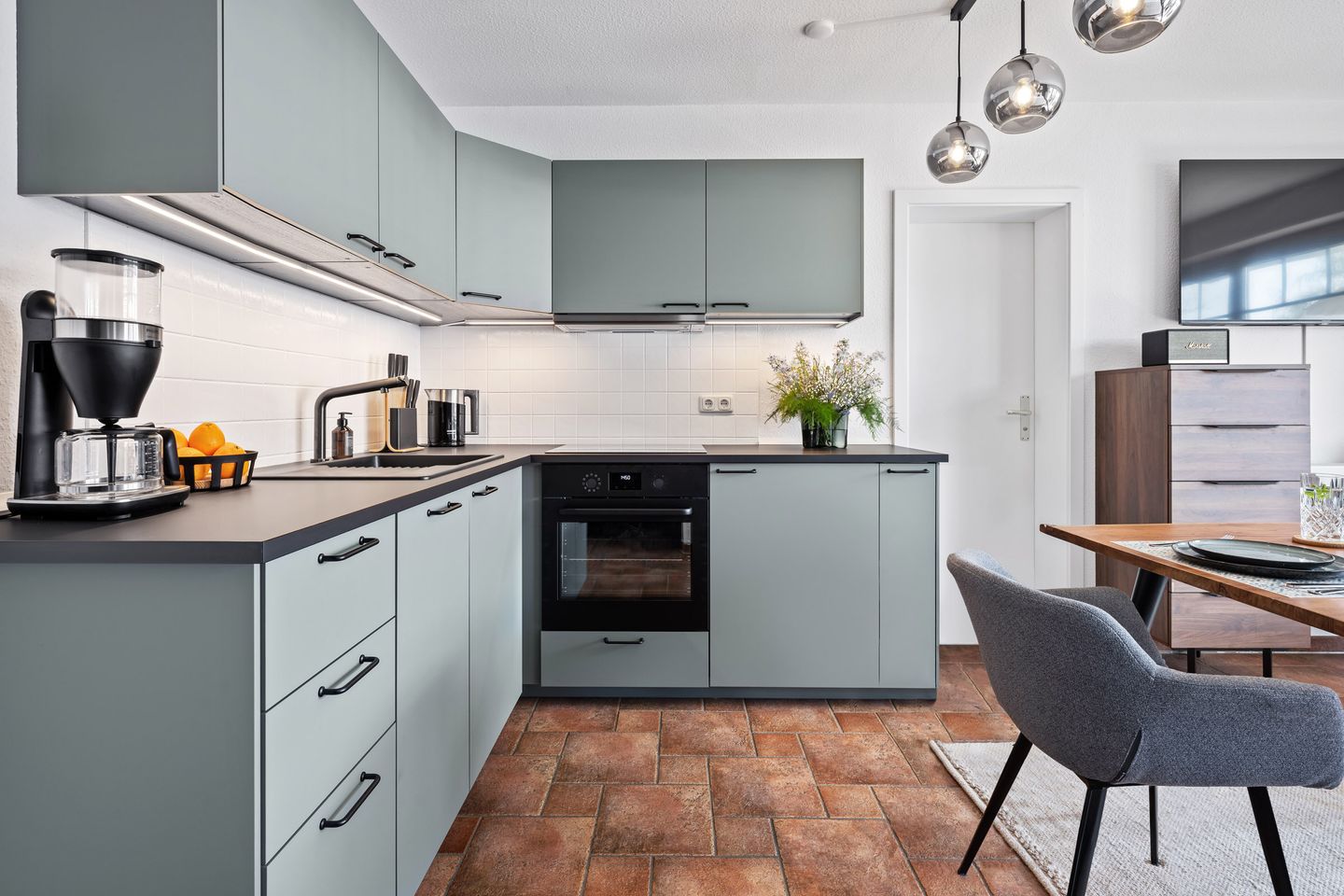 Hier finden Sie alles, was Sie benötigen – von einem Cerankochfeld über einen Kühlschrank mit Gefrierfach bis hin zu Geschirrspüler und Kaffeemaschine.