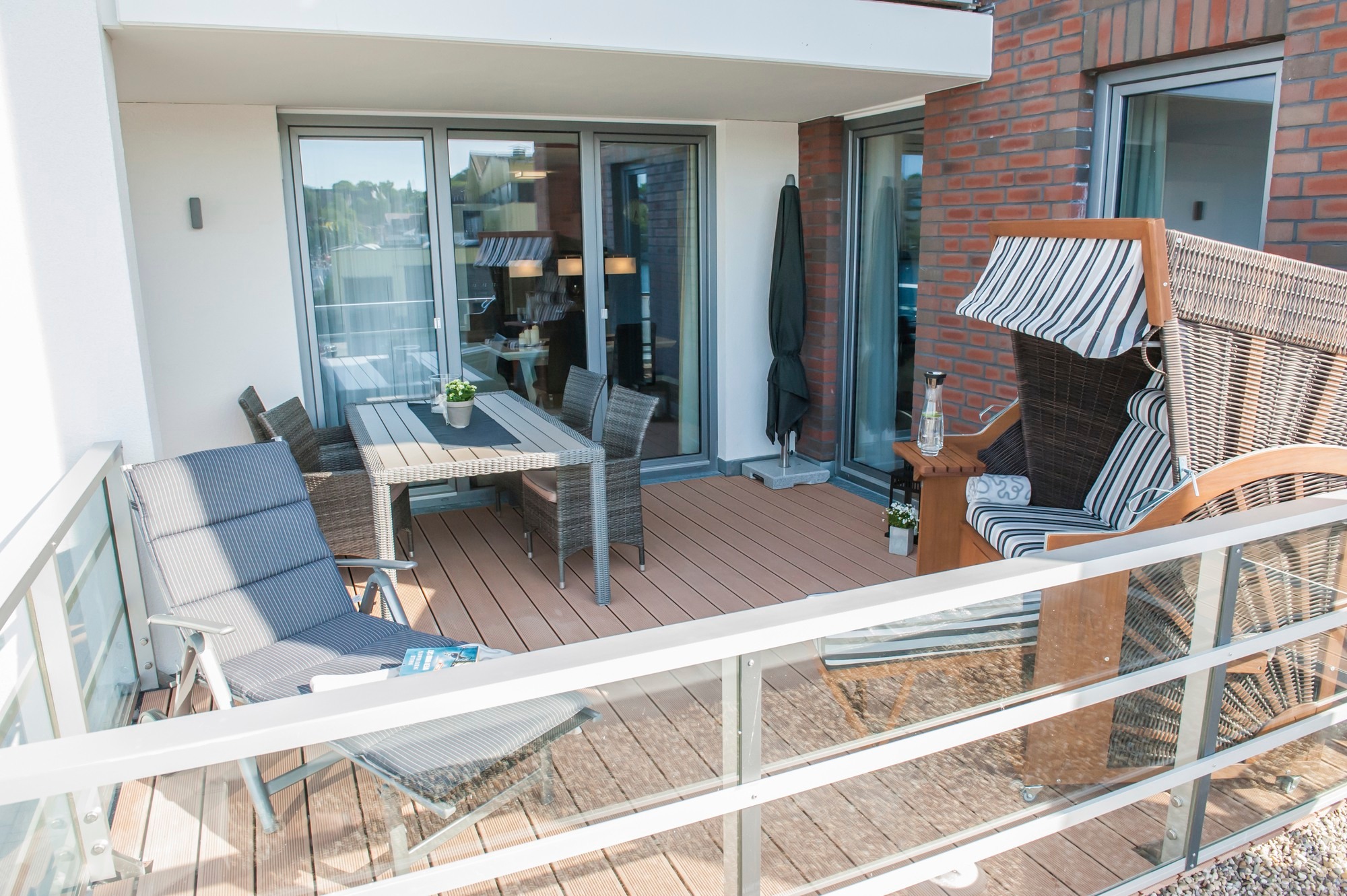 ? 20 m² große Terrasse/Loggia mit Strandkorb und Liegen