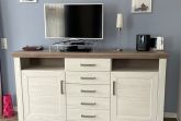 ... ermöglicht durch ein bequemes Schlafsofa im Wohnzimmer auch getrenntes Übernachten,