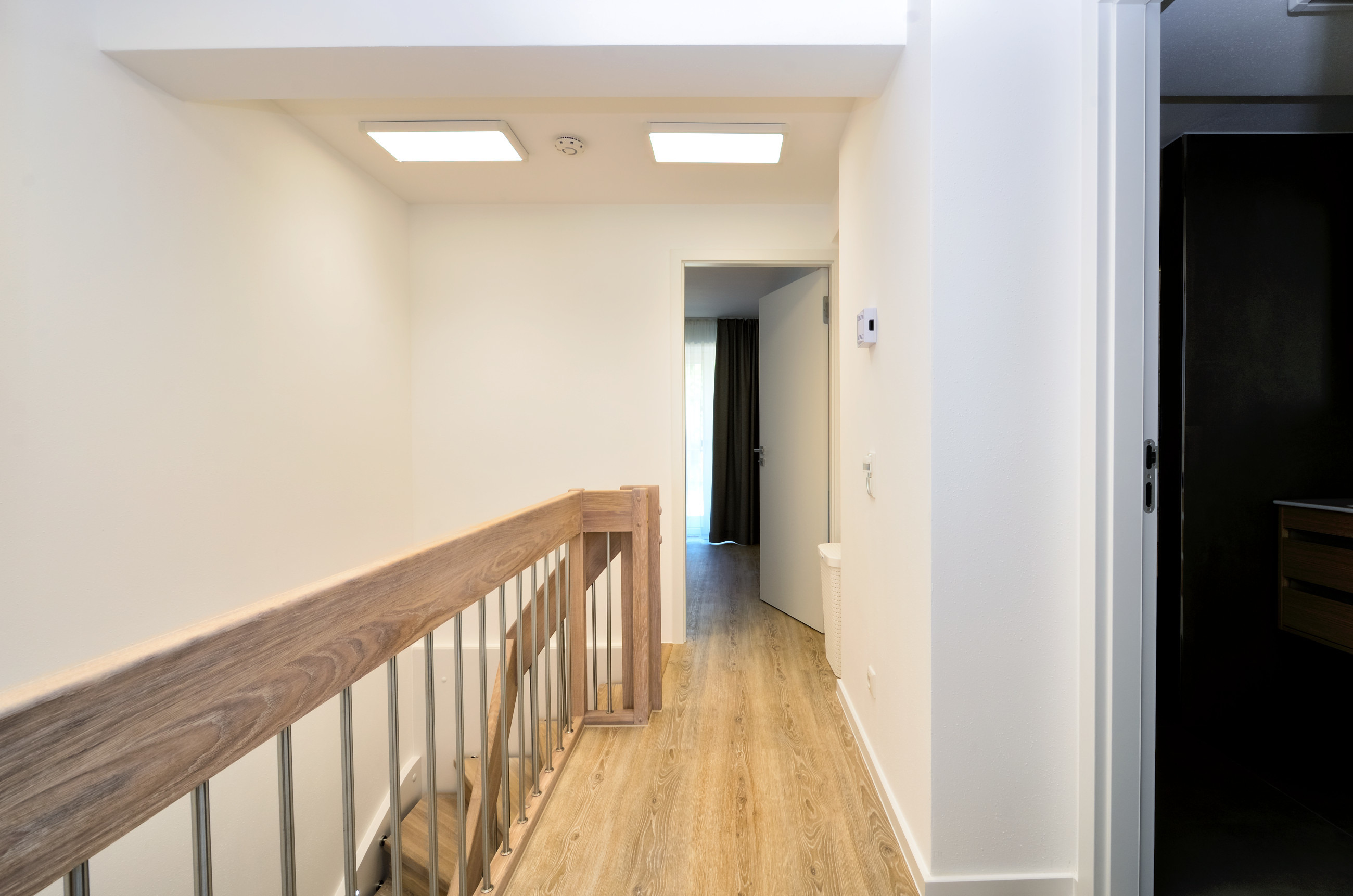 Wenn Sie sich für das GOODDAYS entscheiden, dürfen Sie sich auf eine Ferienwohnung der Extraklasse freuen. Die hochwertig möblierte 3-Zimmer-Maisonette-Wohnung überzeugt durch die exklusive Möblierung sowie ein angenehmes Wohngefühl durch den Einsatz von natürlichen Materialien auf den zwei Ebenen. Eine ideale Familienwohnung, insbesondere für Familien mit kleinen Kindern. Im Elternschlafzimmer befindet sich ein Boxspringbett eines namenhaften Herstellers, der sich auf Luxushotels spezialisiert hat. Hier werden Sie wie auf Wolken schlafen. Im Kinderzimmer finden auch die Kleinsten ein gemütliches Schlafplätzchen. Zum einen steht ein Etagenbett (mit Rausfallschutz) zur Verfügung. Das Bett wurde aus massivem Buchenholz von allerhöchster Qualität gefertigt und mit hochwertigen Beschlägen ausgestattet, somit ist es sowohl für Kinder als auch für Erwachsene geeignet. Für die Kleinsten steht zudem ein rollbares Gitterbettchen (60cmx120cm) bereit. Die Schlafzimmer sind jeweils mit Schreibtischen und großen, geräumigen Kleiderschränken ausgestattet. Zwischen den Zimmern befindet sich das Designer-Badezimmer mit großem Duschbereich, in dem auch die Babybadewanne noch Platz hat.